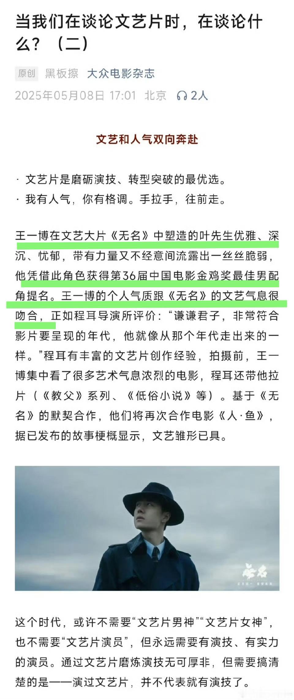 中国真的没有叫好又叫座的文艺片吗?谁说的?开除一个“最高分”就可以当top1不存在吗?可是大众和业内眼睛是雪亮的啊。 程耳导演、王一博主演的电影《无名》就是实至名归的内娱文艺片的天花板。 那些不想承认的人也办法,“《无名》的存在,的确是国产文艺片的孤例。”“过于惊艳,以至于《无名》从来都被坊间野生表格,以“去掉一个最高分”的名义默认开除出文艺片的阵营。” 荒谬吗?也并不荒谬,毕竟,《无名》的横空出世,王一博的出色演绎,冲破了太多人置人于死地般泼下来的满天黑氵,并且一飞冲天。这样太过惊艳的《无名》,人家当然不想“带你玩儿”。 王一博 王一博电影无名