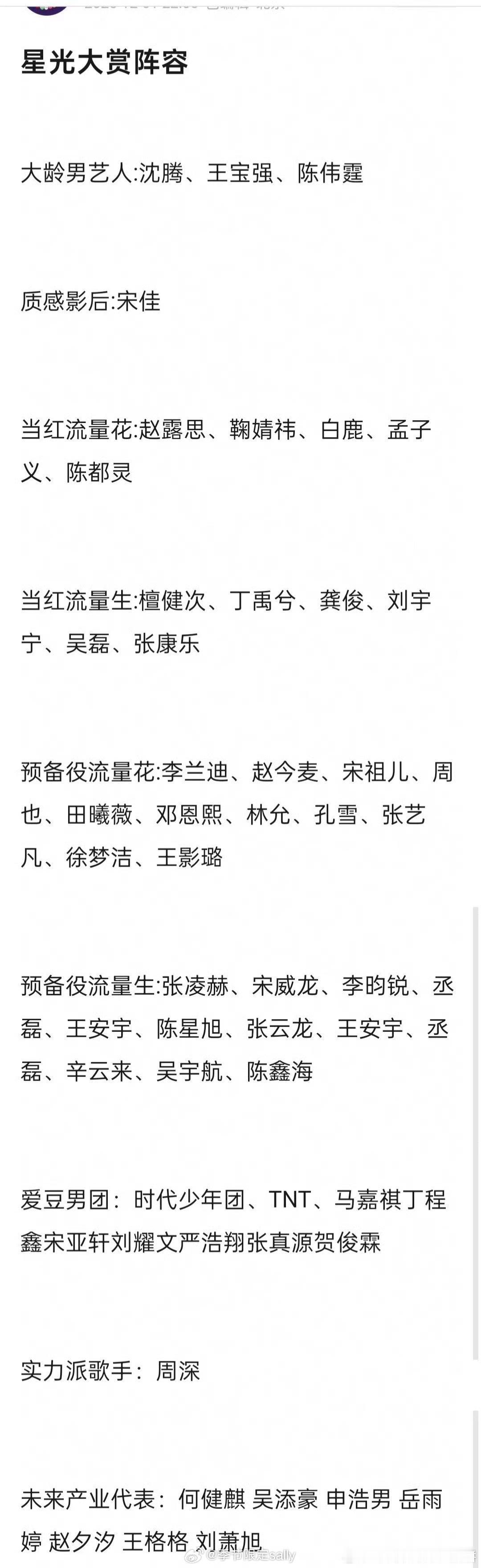 目前确定出席星光大赏的明星们,,目前全是小花小生