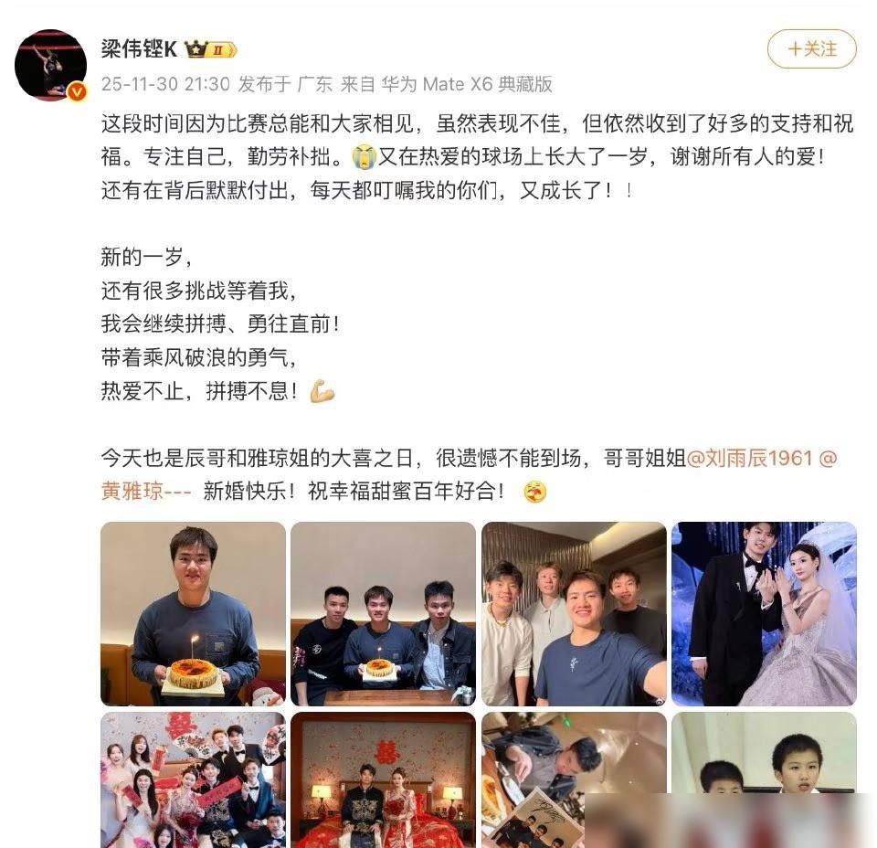 梁伟铿也真是很敢说,刘雨辰和他在互动时祝他生日快乐,他直接吐槽自己之所以没办法去出席刘雨辰/黄雅琼的婚礼是被某些人影响。 这话一说出来,懂的都懂了。 虽然没有点名,但“某些人”指的谁,大家心里跟明镜似的。无非就是球队或者联赛的管理方,怕他和王昶这两位人气王去参加婚礼会影响羽超联赛的票房。 这事挺让人无奈的。 一边是好朋友一生一次的婚礼,一辈子的情谊;另一边是职业球员的身份,身上担着比赛和商业合同的责任。 梁伟铿和王昶作为联赛的票房担当,他们的一举一动确实会被关注。管理层有商业上的考量,怕主力球员请假影响赛事热度,这种担心也不是完全不能理解。 但问题在于,方式是不是太生硬了? 结婚是人生大事,尤其是对于并肩作战的队友来说,这份情谊更不一般。用“某些人影响”这样的方式无法到场,留下的遗憾是实实在在的。这不仅仅是错过一场聚会,更是对友情的一种亏欠。 说到底,这暴露了一个老问题:在我们的体育圈里,运动员常常被看作“集体资产”,个人情感和社交生活有时需要为所谓的“大局”让路。这种管理模式,在强调个体价值的今天,越来越显得格格不入了。 其实完全可以有更人性化的处理方式。比如提前协调赛程,或者以官方身份送上祝福,把球员参加队友婚礼也塑造成一种温暖的赛事花絮,这难道不是一种更好的形象宣传吗? 硬性阻拦,反而寒了运动员的心,也让外界觉得不近人情。 这件事之所以引发讨论,是因为它触碰了一个普遍的共鸣点:在事业和友情之间,人究竟该怎么选?完全偏向任何一方都可能留下遗憾。 理想的状态,是能找到平衡。而一个成熟的管理体系,应该帮助运动员去实现这种平衡,而不是制造对立。 希望这件事能给相关方面提个醒。优秀的运动员首先是活生生的人,他们有血有肉有感情。尊重他们的个人情感,往往能换来他们更投入的职业回报。 冰冷的规则之上,更应该有人情的温度。这份温度,才是一个事业能够长远发展的真正基石。
