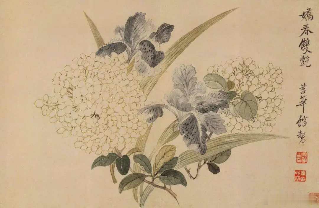 恽寿平没骨花卉。恽寿平追摹古风而不为古意所羁,以写生入手,苦心专研“没骨画”。他不单对宋人的工笔院体画和元人的水墨花鸟名作反复临摹,对前代的沈周、唐伯虎、周之冕等人也认真学习。他创造性地发展了“没骨法”,这一画法的产生,引起宫廷贵族、朝野名流的竞相仿效,在常州一带甚是风行,开创了“没骨写生花卉”一派,即“常州画派”。这就是中国风遇见艺术