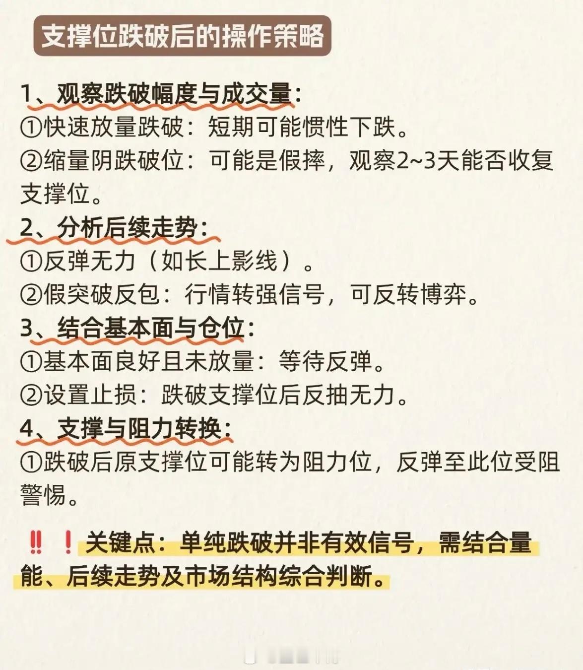 股票技术:支撑位识别与破位应对策略解析在技术分析中,支撑位的识别与破位后的操作是交易决策的关键环节。常见支撑位主要包括均线系统、前期低点与跳空缺口。当价格回落至重要均线(如5日、10日、60日线)附近并呈现缩量企稳,往往形成有效支撑;前期反复验证的低点也具有类似作用,但需警惕放量跌破信号;向上跳空后的缺口上沿若回踩确认,同样可能提供支撑。这些位置常被投资者视为入场或持仓的参考依据。一旦支撑位被跌破,市场情绪可能出现转折。观察跌破时的成交量至关重要:放量下跌常伴随短期抛压加剧,而缩量阴跌则可能存在假摔可能,需观察随后能否快速收复。跌破后若反弹无力,或出现假突破反包形态,往往反映多空力量转换。此外,原支撑位跌破后可能转为后续反弹的阻力位,形成“支撑阻力转换”效应。从市场情绪与发展潜力看,支撑位的有效性能反映资金承接意愿与趋势延续性。当前市场更注重结构性与量价配合,单纯价格跌破需结合整体走势、资金动向及基本面综合判断。未来走势将更依赖市场整体环境与情绪变化,投资者宜保持谨慎,灵活调整策略,避免单一信号盲目操作。整体来看,技术分析工具在波动市场中仍具参考价值,但需配合风险管理与独立判断。