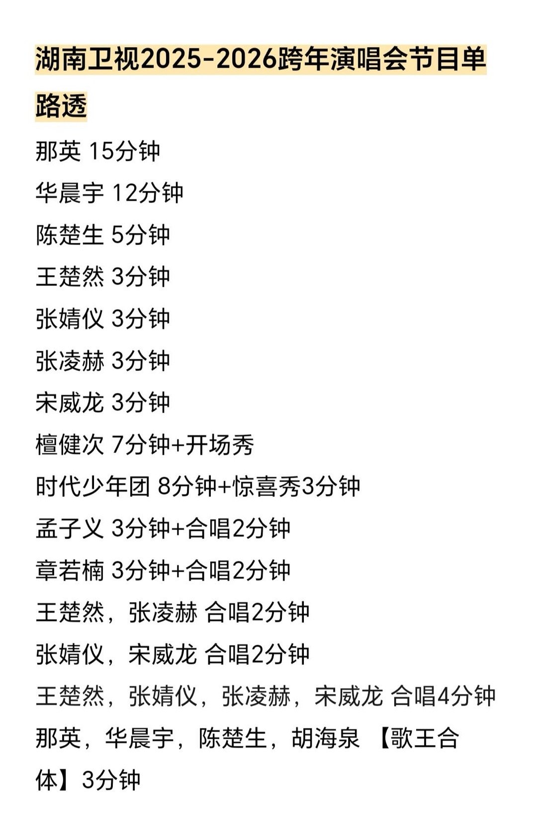 湖南卫视跨年演唱会第一波节目单路透