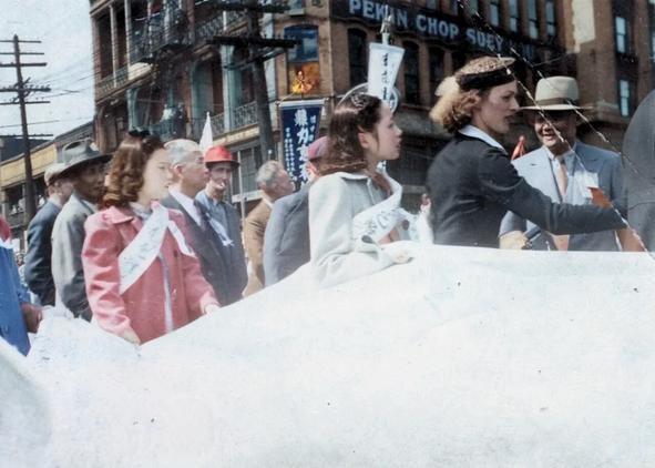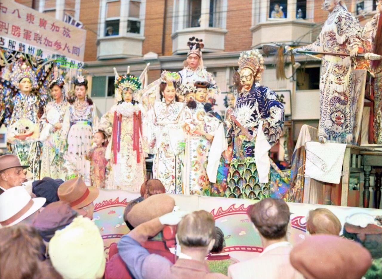 该组照片为1945年8月15日,日本投降后加拿大华侨在“温哥华”唐人街庆祝抗战胜利的真实照片。 照片中,我们还能看到许多华侨社团的积极参与。铁城崇义总会的花车,展现了他们的团结与力量。旅加广东八和优界的花车也同样引人注目,他们精心设计的花车展示了丰富的文化元素和对和平的渴望。华人妇女会的成员们则在游行中展示了他们的爱国情怀与对未来的希望。 这场庆祝大会不仅是对抗战胜利的庆祝,更是对和平与未来的期盼。温哥华的华侨们通过这次活动,表达了他们对祖国的深厚情感以及对未来的美好愿景。这场盛典不仅是对过去的回顾,更是对
