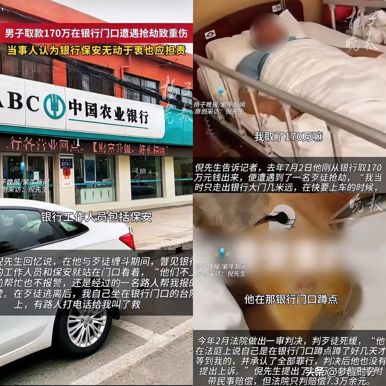 在中国不可能发生的事,但在河南发生了! 郑州一男子在农行取170万现金,出门就遭到歹徒持自制枪抢劫,两人缠斗20分钟,男子被打成重伤,左眼失明,拼尽全力才保住了巨款! 更炸裂的事来了,就在银行门口整整20分钟的抢劫,银行里的工作人员、保安居然全程当看客,最后还是路人看不下去,又报警又叫救护车,真是让人寒心 而歹徒当天被捕,事后还判了死缓,但倪先生仍然要坚持追究银行责任 有人说,这就是银行“离柜概不负责”,也太冷漠了吧?不帮忙我可以理解,但是起码打个报警电话吧 也有人说,银行工作人员几千块工资,拼什么命啊,家里还有老婆孩子呢 甚至还有人说,这大哥这么有钱还跟歹徒拼命实在犯不上 大家觉得,银行做法有问题吗?
