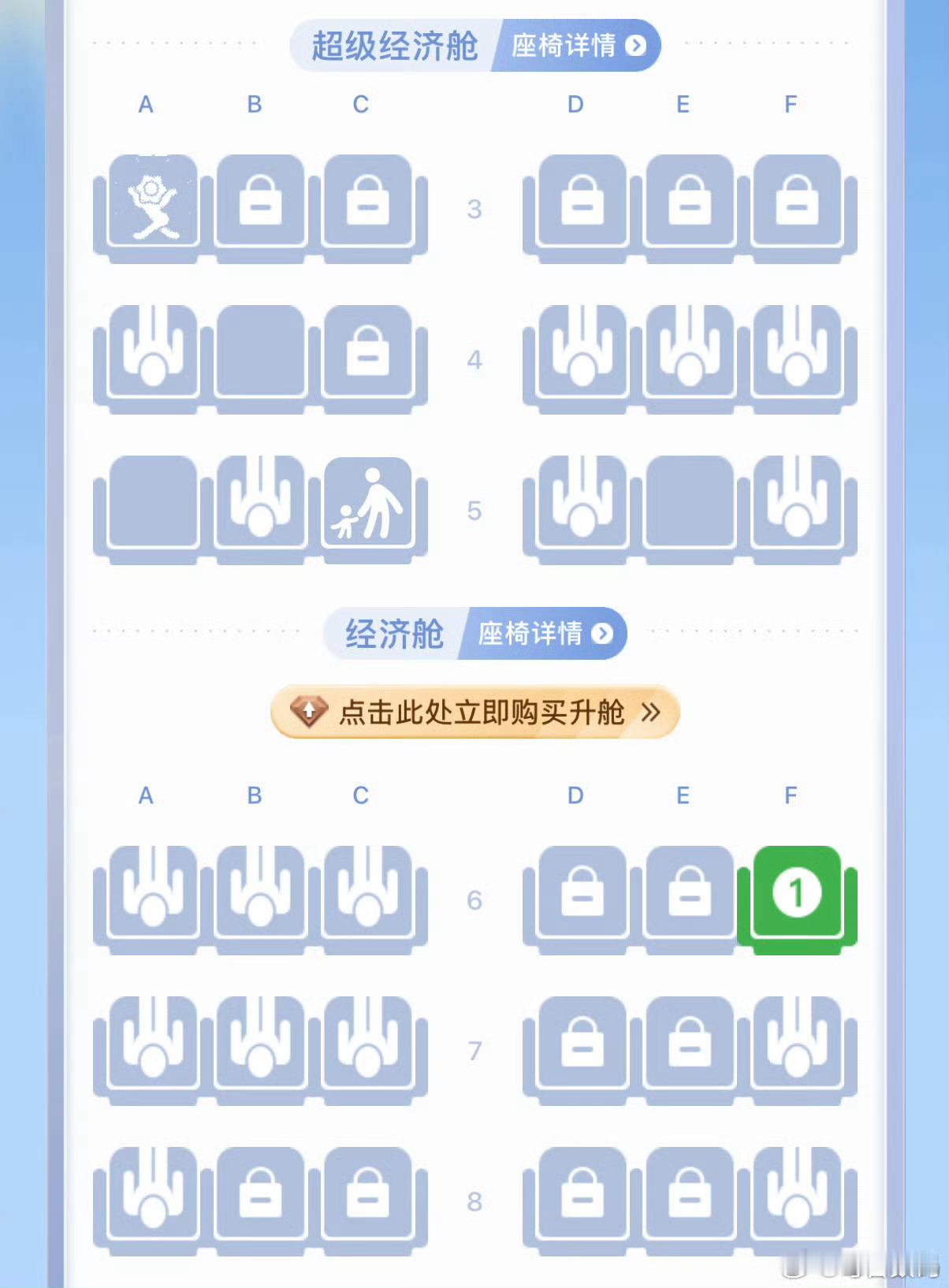 经济舱大量舒适座位被锁了手机上值机各种锁座位…现在越发严重了,哪怕开放值机第一时间选,能选靠窗和过道的座位也有效。我现在基本都是早到一会,到值机柜台选座位,只要有座位,前排靠窗随便选,还不用花钱