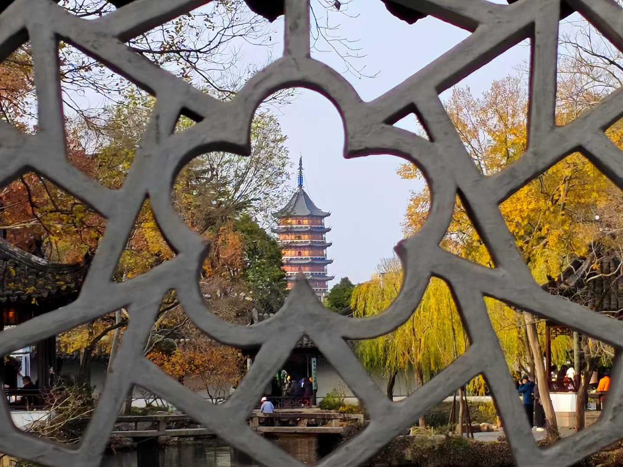清晨九点,阳光恰好挣脱云层,温柔地洒在白寺塔上。青砖塔身被镀上一层浅金,棱角处的光影柔和交错,塔檐的纹路在晨光里愈发清晰。风掠过塔顶,铃音轻响,混着暖融融的日光,让人心里格外安宁。这座古朴的古塔静静矗立,晨光中少了几分肃穆,多了些温润。站在塔下仰望,仿佛能触摸到岁月的肌理,连呼吸都跟着慢了下来,满心都是对这份清晨静谧的沉醉。 白寺塔,离拙政园1公里,是拙政园著名的借景地