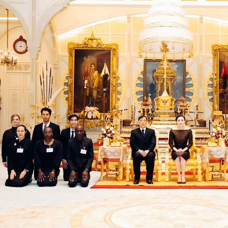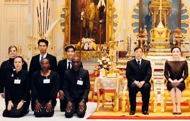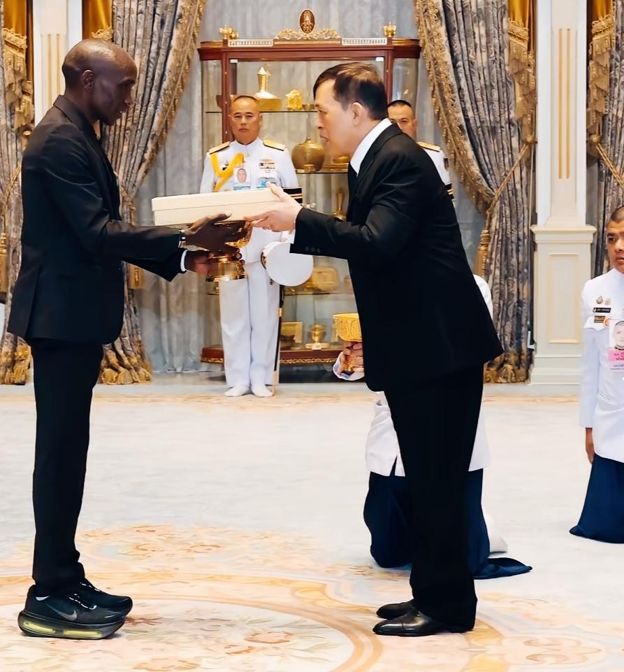 这一刻体现了泰国国王的地位吧! 参加马拉松比赛的虽然是外国运动员,但是也要按照泰国的传统仪式! 这既体现了泰国国王的地位,也尊重他们的文化传统! 这就是入乡随俗啊!