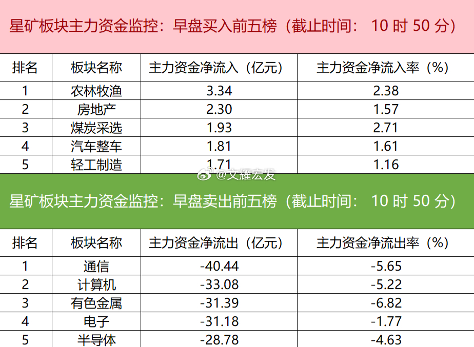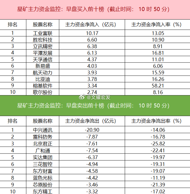 【主力资金监控:中兴通讯净卖出超20亿】今日早盘主力资金流向分化,净流入板块主要为农林牧渔、房地产和煤炭采选,而通信、计算机、有色金属则遭遇资金大幅净流出,其中通信板块净流出额超过40亿元。个股方面,工业富联获主力资金净买入超10.17亿元,居于首位,胜宏科技、立讯精密、平潭发展等亦获净流入。另一方面,中兴通讯遭主力资金大幅净卖出,金额超过20亿元,雷科防务、北京君正、广和通等资金净流出额居前。财经股票今日盘面分析
