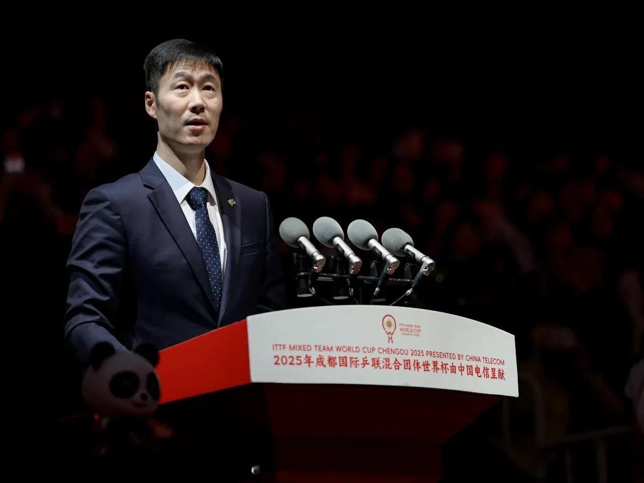 王励勤称全力以赴为运动员做好保障2025年成都国际乒联混合团体世界杯正在成都进行