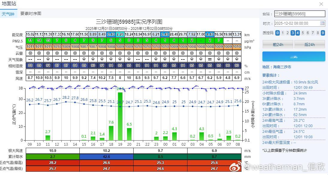 【雨雪】昨天到今晨,华南降雨有所增多,海南和广东站点包揽24小时降水榜前十。海南三沙珊瑚站,出现了暴雨。广东信宜、雷州、遂溪、海南琼中、万宁、琼海、陵水、屯昌、五指山出现中雨。另外在内蒙古、黑龙江、吉林、山东部分地区出现降雪。不仅是烟台-威海一带,山东东营、广饶、桓台、临淄、寿光也出现冷流降雪。今天山东半岛会继续出现冷流降雪。今后3天,西南、华南等地还有降雨。对应形势场,700百帕的偏西气流输送水汽,同时低空850百帕的冷空气南下过程中,部分从黄海东海经过,加湿进入江南,后期南下后再从南海上以东南风回流北上,因此也提供了一些水汽,与700百帕暖湿气流结合,导致西南和华南等地有降雨。从地面2米的相对湿度预报看,南方地区,今后3天的干燥程度会有所缓和。但北方多地继续干燥的天气。青藏高原以及西北东部、华北部分地区,依然会出现午后相对湿度低于20%甚至低于10%的情况,务必要警惕火灾的发生。