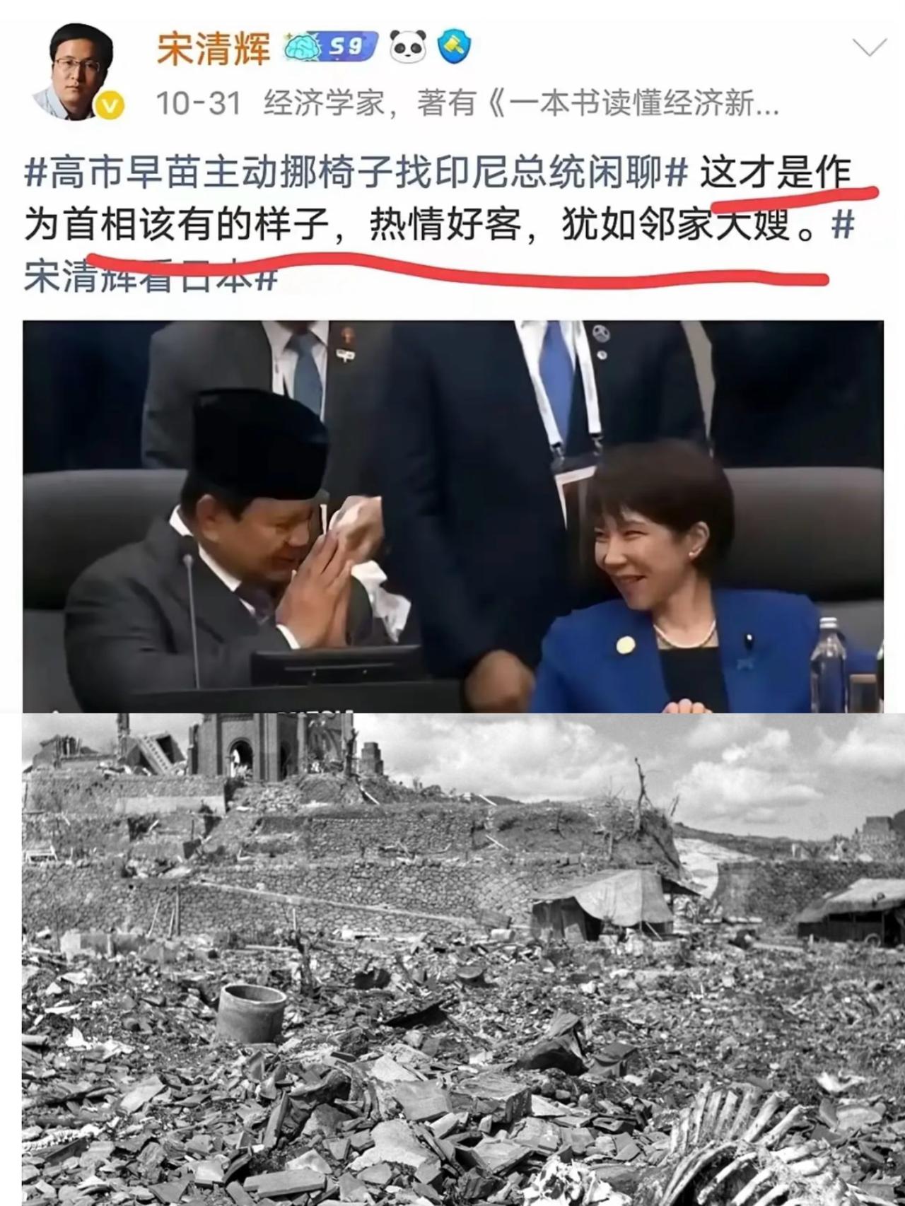 看到这位所谓的专家对这幅图片的点评我没有别的评价,我只能发自内心地说出:“高,高,实在是高!”。 这个你口中的邻家大妈是一个地地道道的军国主义分子,从没有为当年他们对我犯下的滔天罪行表现出哪怕一丝一毫的反省和愧疚, 一句话:她不是“不懂事”,而是“故意的”。 而最近围绕她的各种表态,更是让人看得清清楚楚:有人就是想把历史的尘土重新扬起来,把亚洲局势搅得越乱越好。 那么,事情究竟发展到什么程度了? 第一,近期日本政坛的一些声音明显在“往前冲”。 不只是个人的情绪化表达,而是有意把“安全焦虑”无限放大,借机推动本国军事化进程。公开资料显示,日本连续多年提高防卫预算,明年预计还要继续增长。这一连串动作配合一些政客的言论,目的太明显:强化所谓“威胁论”,为自身扩军找借口。 第二,对外关系上,也出现了非常值得警惕的信号。 不久前,日本一些政要不断借台海议题做文章,说得非常夸张,好像周边地区随时要失控一样。实际上,台海局势最需要的是冷静,是对话,而不是渲染紧张、挑动对立。这种做法,不仅不负责任,也让地区国家不得不加强防范。 第三,我们必须看清,更大的背景是国际力量对比正在发生变化。 全球经济正在调整,美国在一些地区“投入减少”,日本则想借机提高存在感。但问题是,任何国家要想成为地区“稳定力量”,首先得尊重历史、尊重事实,而不是拿着陈旧的意识形态去碰瓷现实。 说到底,日本个别政治人物现在这种姿态,像不像生活中那种“越心虚越嚷嚷”的人? 口气越大,越说明底气不足。 真正有实力、有自信的国家,不会靠放狠话求存在,更不会拿历史开玩笑。 而我们这边呢? 从经济数据,到国际合作,再到区域稳定贡献,都是踏踏实实往前走。 有实力,才最重要。 稳住自己的节奏,保持发展,不被外界噪音带节奏,这才是赢面最大的选择。 最后也提醒一点:台海的真正稳定,从来不是谁的口号能决定,而是看谁愿意推动和平发展、经济合作、民生改善。 谁在制造紧张,谁在缓和局势,大家都看得明明白白。 历史不能忘,现实要看清;该警惕的要警惕,但更关键的,是把自己的路走稳,把自己的事做好。 以上是小编个人看法,如果您也认同,麻烦点赞支持!有更好的见解也欢迎在评论区留言,方便大家一同探讨。如需 换个版本、加强火力、语气更稳重、加入更多数据背景或做成 3 种不同风格,告诉我即可!