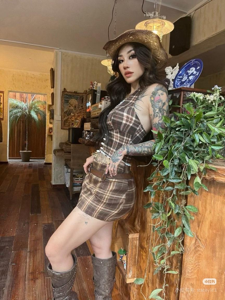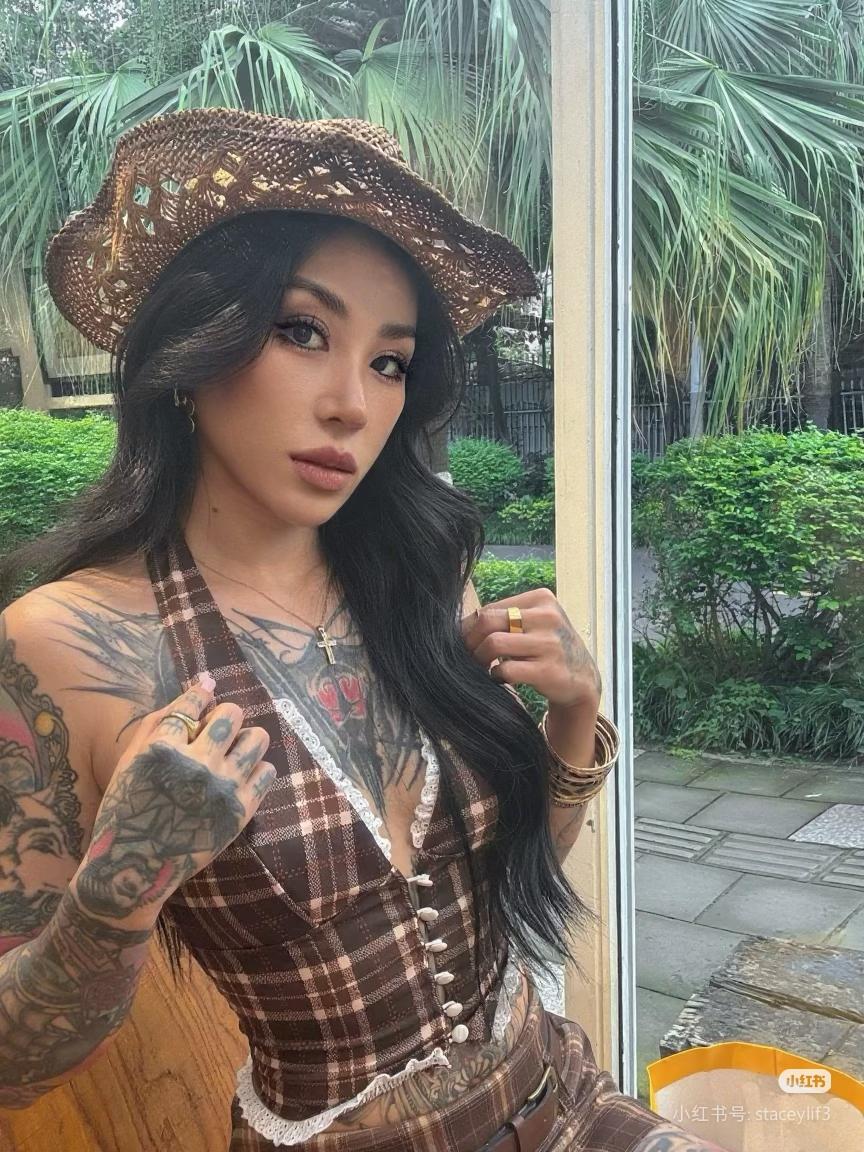 复古风情穿搭,帽子与纹身相得益彰,尽显个性魅力!👒💄🔥