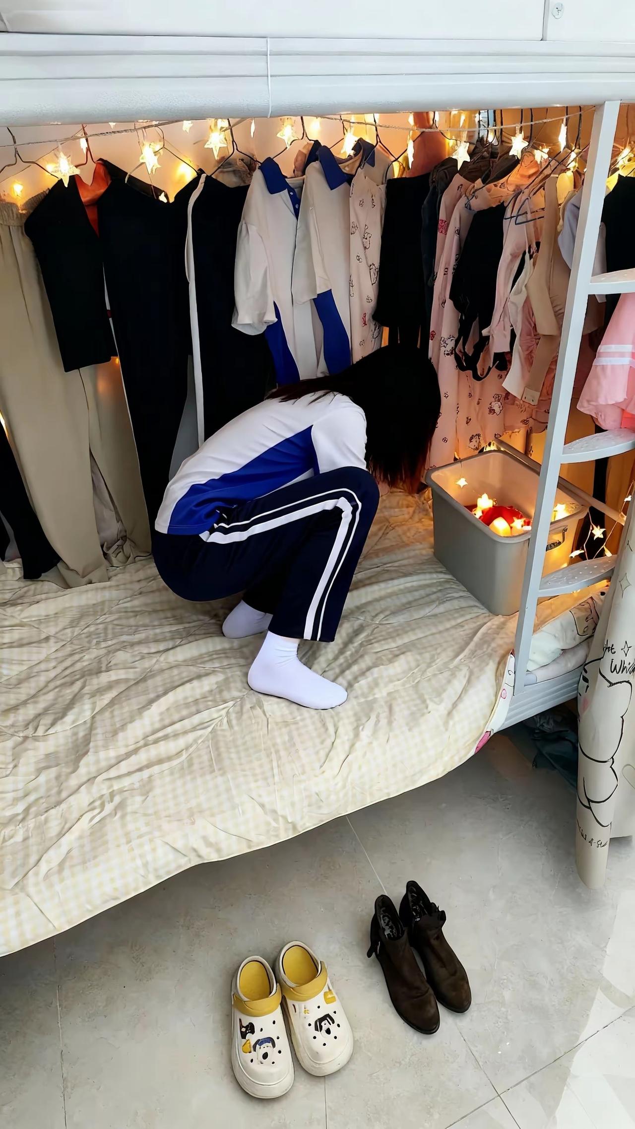 把星星灯揉进衣柜的褶皱里,校服裤沾着床铺的温度,在乱糟糟的小世界里,偷偷给袜子和鞋子留一片暖光。
