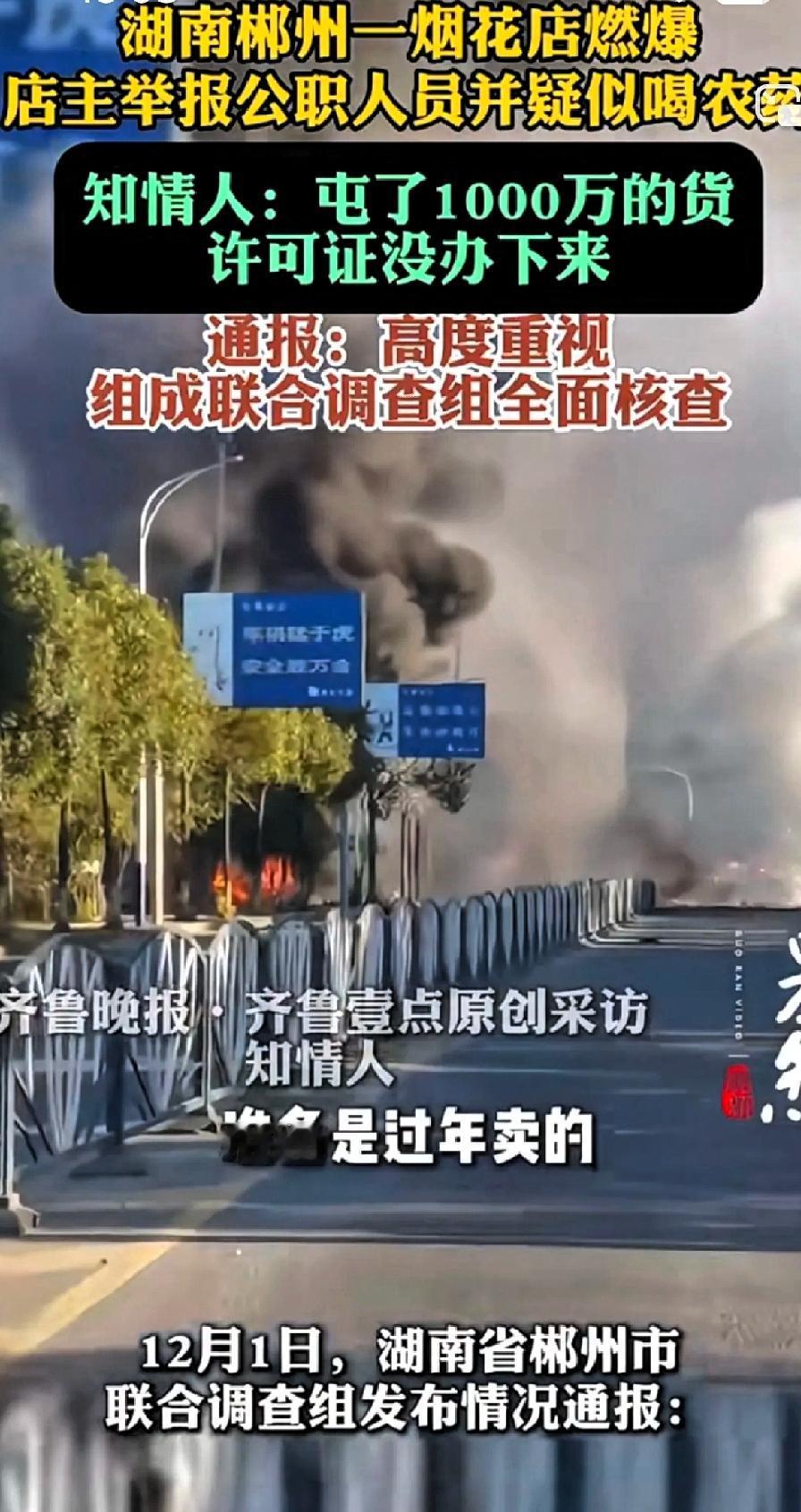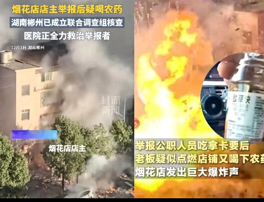 真的没想到! 他竟然拿命去赌 湖南一家烟花店燃爆,老板囤了1000万的货,经营许可证却没办下来 一气之下实名举报了公职人员,自己喝了农药自杀。 据消息说他囤了1000多万的货等旺季,许可证却被一次次卡住,货卖不出,成本收不回是个狠人!所以才喝农药, 冤屈再大,自己的生命没了也薅不了别人几根头发, 他也是拿生命来唤醒公平.公正.透明.良知!但是行为不可取!