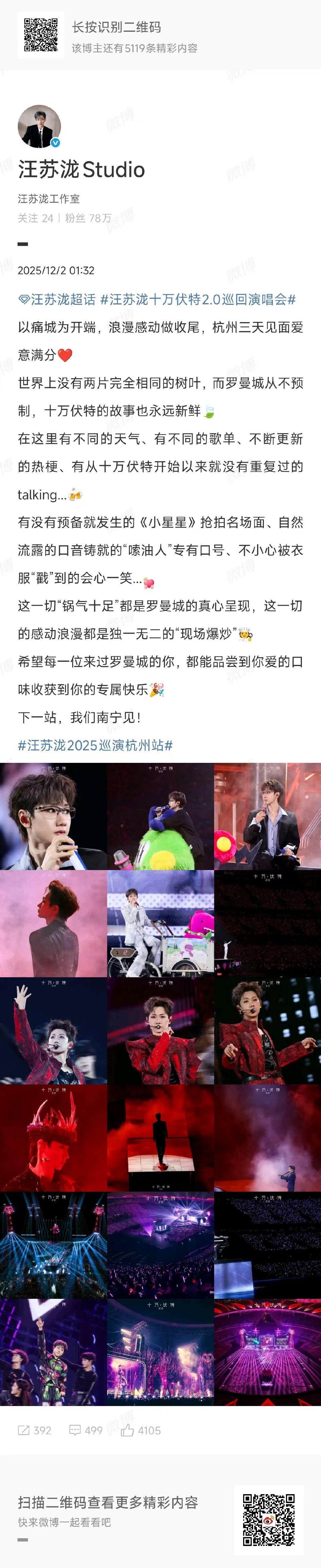 汪苏泷演唱会浪漫感动做收尾汪苏泷杭州三天见面爱意满分 汪苏泷杭州三天见面爱意满分,浪漫感动做收尾 下一站我们南宁见汪苏泷没想到星期一有这么多人