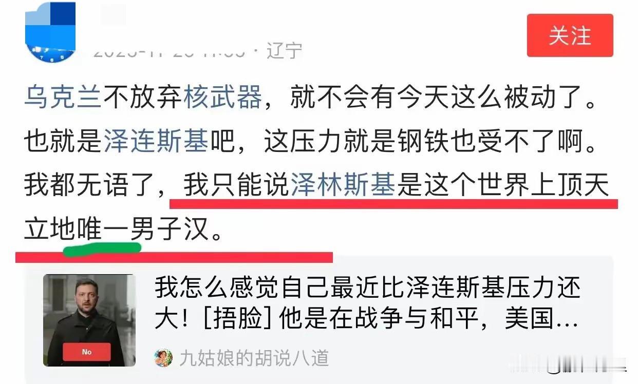泽连斯基的忠粉不少啊,看看这一脸的舔相,这个世界上顶天立地的唯一男子汉,你们的全世界真的只有井口那么大,你们都不知道什么是全世界,你的全世界只是你们几个,不包括别人,别动不动就代表别人,你们没资格,但在中国喊口号有什么用,现在去乌克兰啊,泽连斯基正需要你们,光沾英雄气没用,自己去当英雄才行