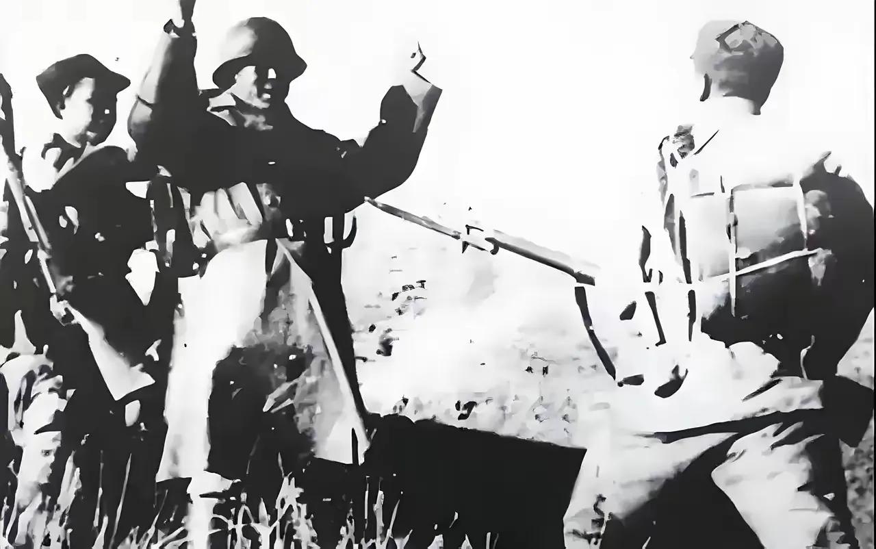 谁说日本鬼子只会自杀、不会投降?下面这张真实的照片记录了被我八路军俘虏的日本鬼子,高高的举起,双手向我八路军缴械投降。