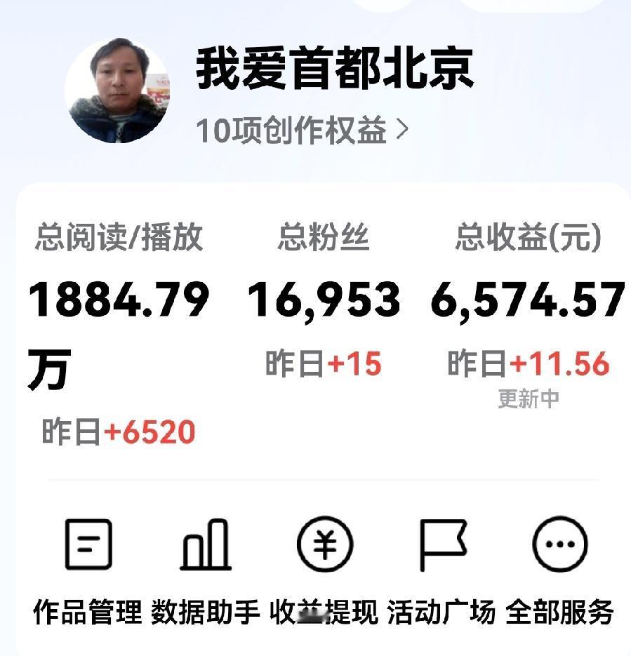大惊喜!短短的几天,好像我的头条账号做起来了。 为什么会有这样的判断?源于我这段时间的阅读收益单价趋于平稳,始终处于1元至4元之间,与以前三年多的头条创作收益单价相比,提高了5至13倍,这是一个了不起的飞跃阶段,这样的收获就像中了彩票一样、让我的心不停地呯呯呯地跳动起来! 今天的创作收益出来了,6520的阅读量,给了11.56元的报酬,阅读单价是1.78元,低于昨天的2.34元,在1至4元的区间之内,属正常波动范围。 我在头条真正创作是三年前开始的,这三年多时间以来,我感觉自己就像是一只无头苍蝇一样,到处乱撞,可以说是头破血流,艰难无比,更没有任何建树,不过值得庆幸的是,我并没有被头条的巴掌拍死,虽然前面停更了一段时间,但由于头条的活动通知,我又开始起了创作,这时的重新创作,我开始思考,为创作把握好方向,居然找到了正确航向,现在好像又活了过来。 以前三年多的创作生涯,我的创作方向并不垂直,也不懂头条规则、喜欢蹭热点,看到什么、想到什么就写什么,现在才明白,这一切的操作都是错误的,耽误了太多太多的宝贵时间,由于创作方向的不垂直,头条给予的收益单价也很低,有时低至几分、1毛,即使出现过许多爆款,也没有多少收益,因为这样,自己的账号权重低,流量又不稳定,一度垂头丧气,甚至是导致停更。 这次重新回到头条创作,我不再做无头苍蝇,而是对以前的失败进行认真分析,再加上友友们的一些经验之谈,我放弃了以前无方向的创作,改为记录自己在头条生活领域进行创作,没想到奇迹出现了,11月20号开始创作,从24号起开始有了几块钱的收益,每天的流量也从几百开始,慢慢上升到几千,甚至是现在,每天已有几万的流量,有一篇达到了十万。 更让我欣喜的是,从11月24号开始,我的阅读单价稳定在1元至4元之间,超过我以往三年多的最高收益单价0.2元、0.3元的5倍至13倍之上。 这段时间的头条创作,我收获巨大,最大的收获是我好像解锁了头条创作高收益单价及头条的创作流量密码!友友们若感兴趣,多看看我这段时间的头条生活日记,也许会帮助到有心的友友们!