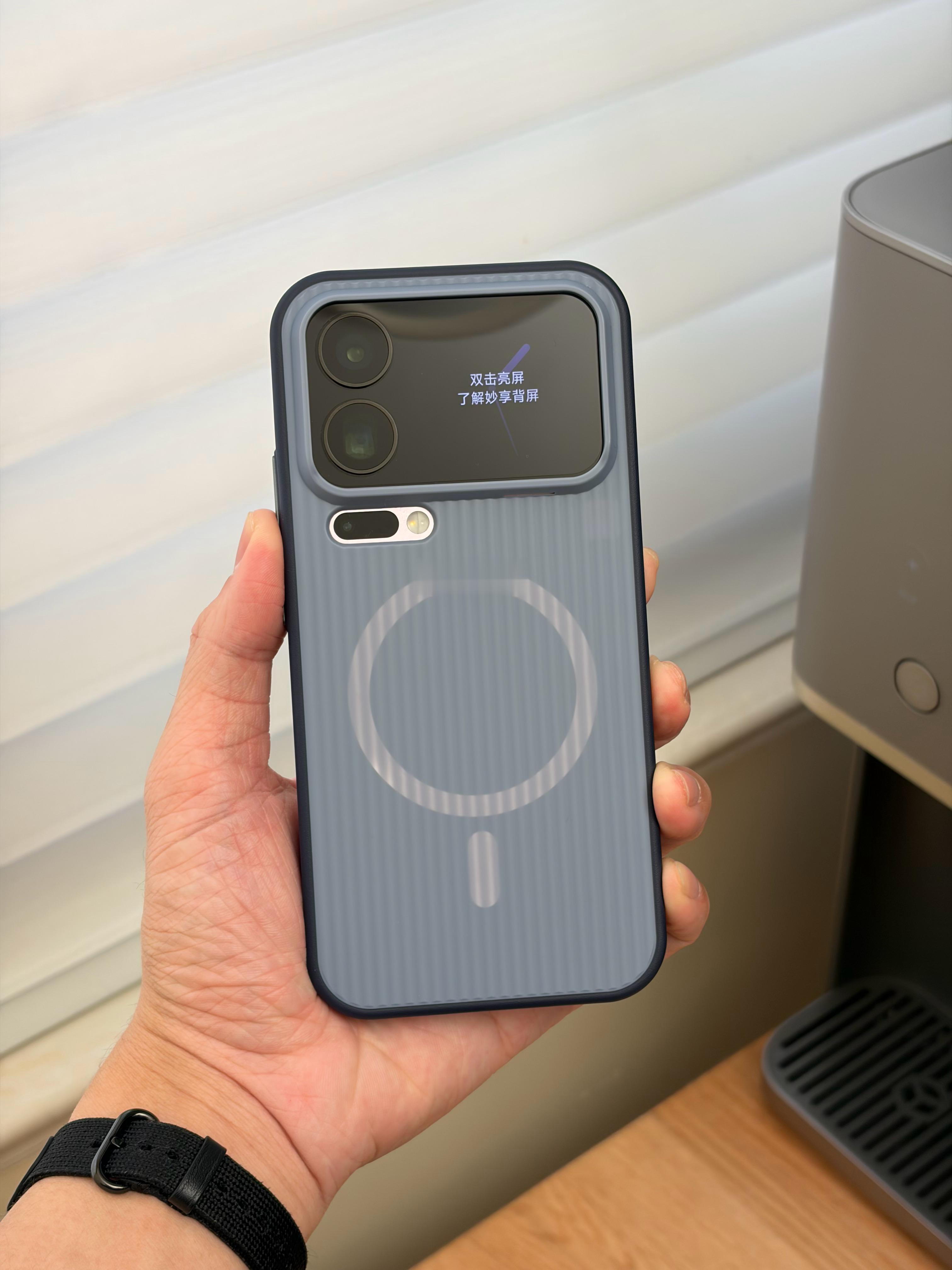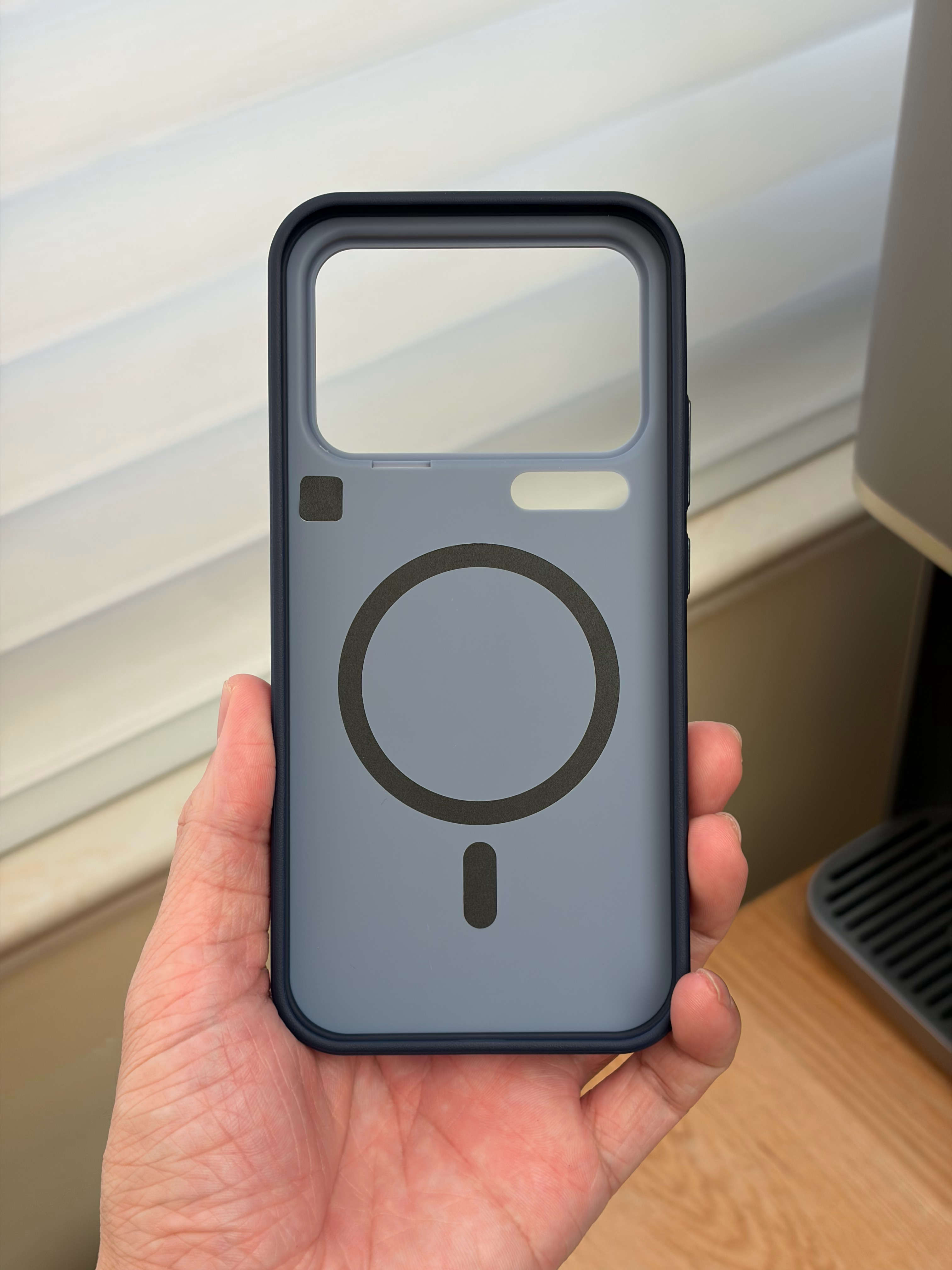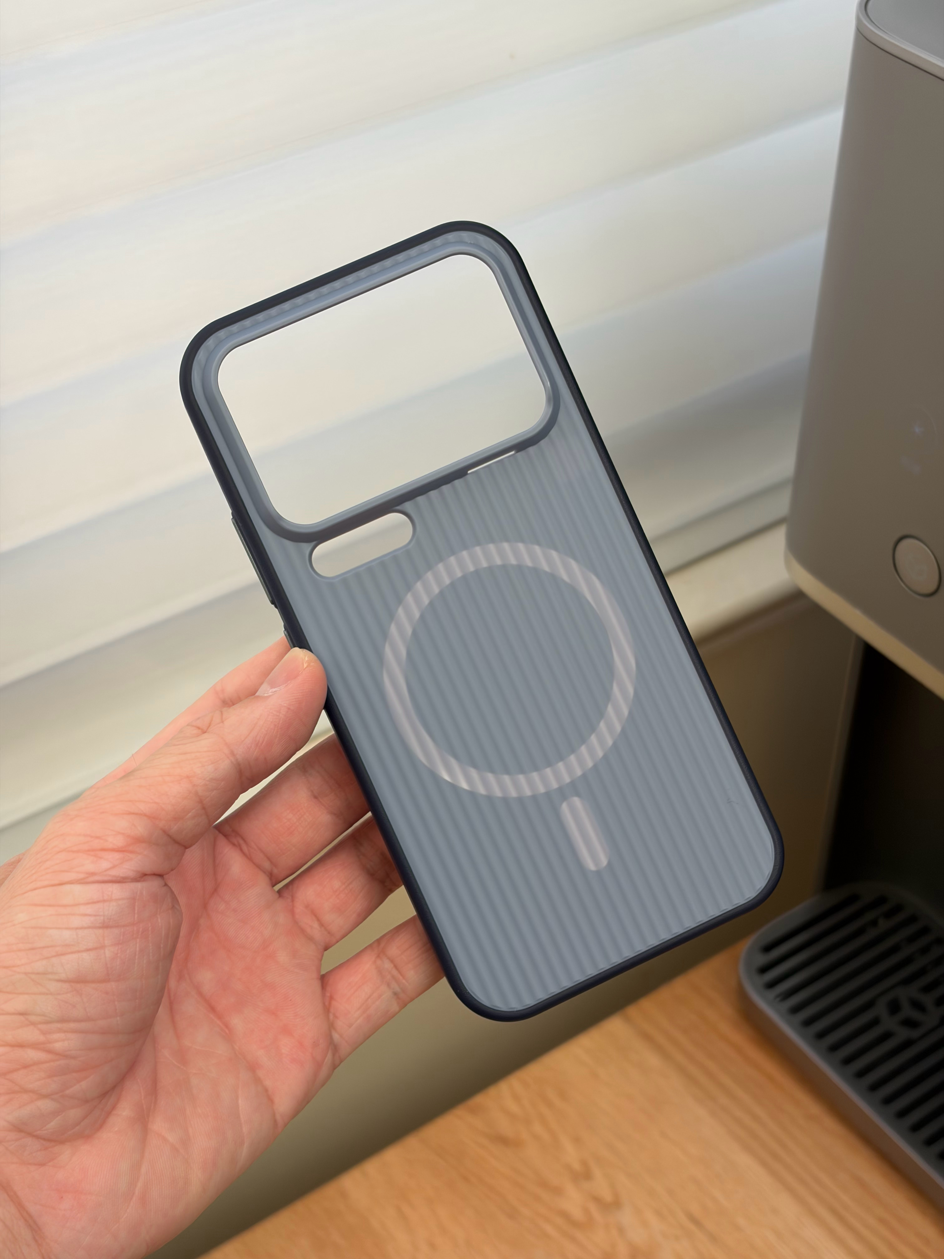 AiUV 家小米17系列光栅手机保护壳,磁吸版的, 这个是沧蓝色,很淡雅,和紫色机器很搭,还有个配色,叫做岚青,很优雅的颜色,做工质感都很好