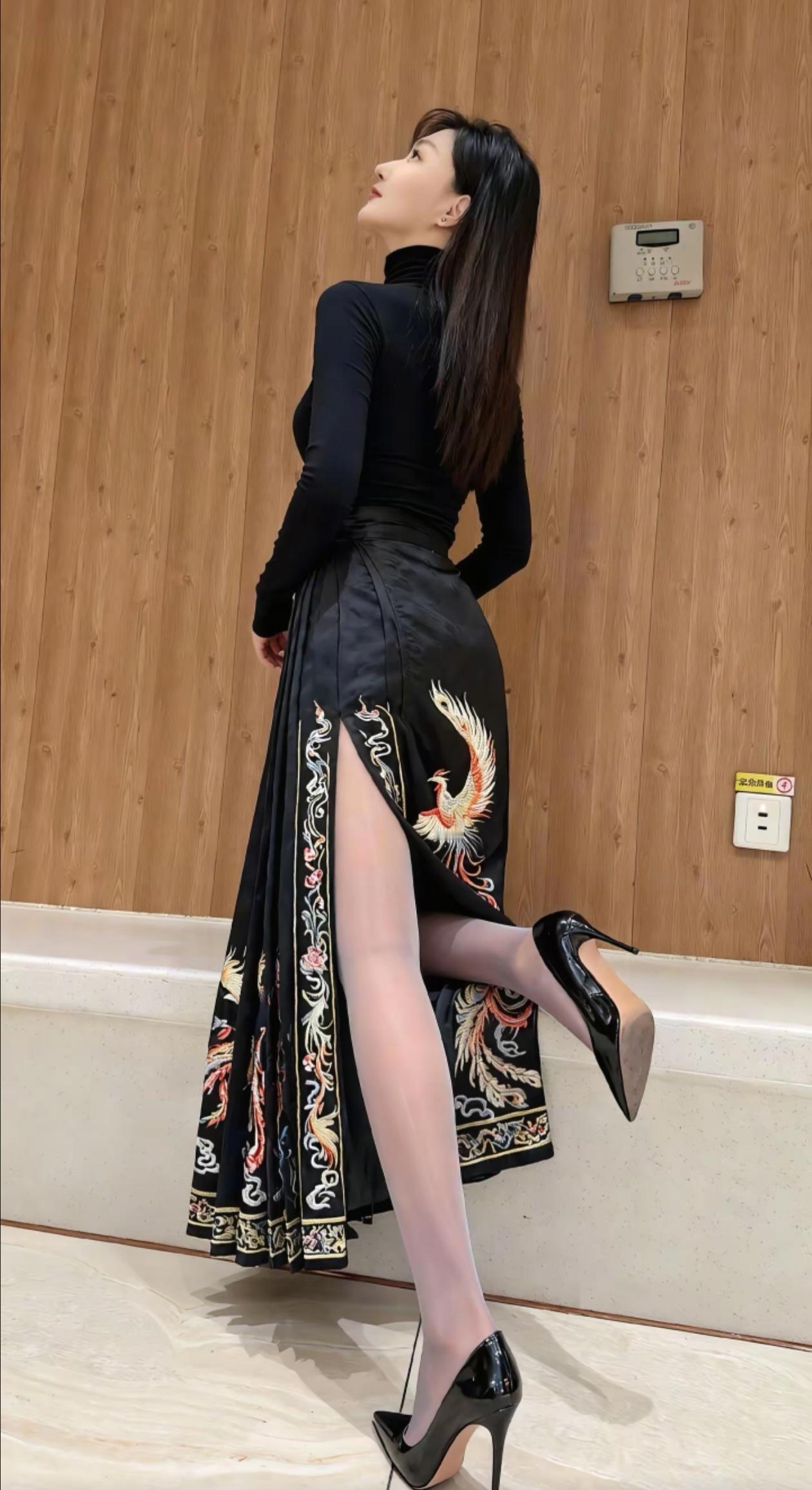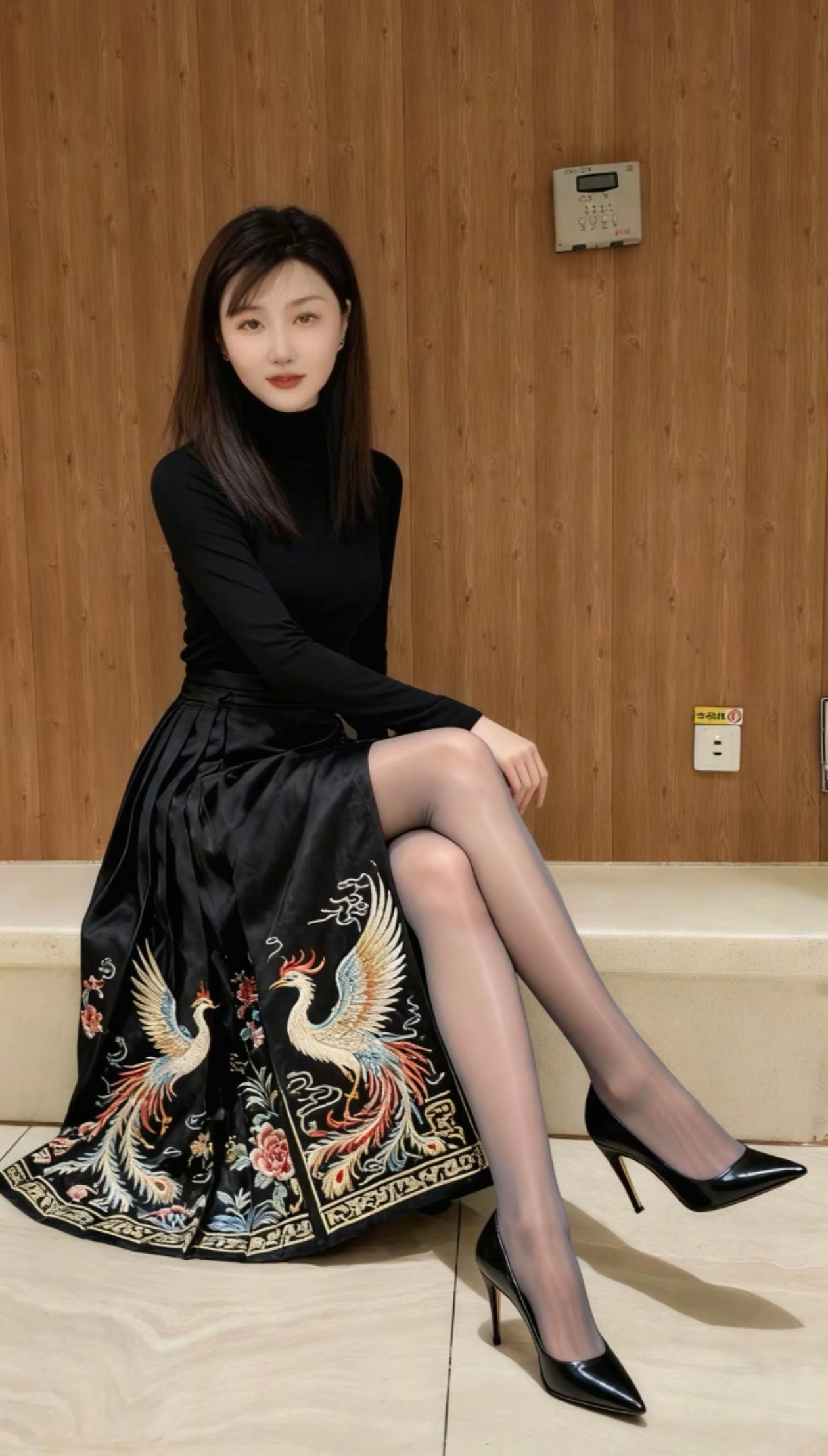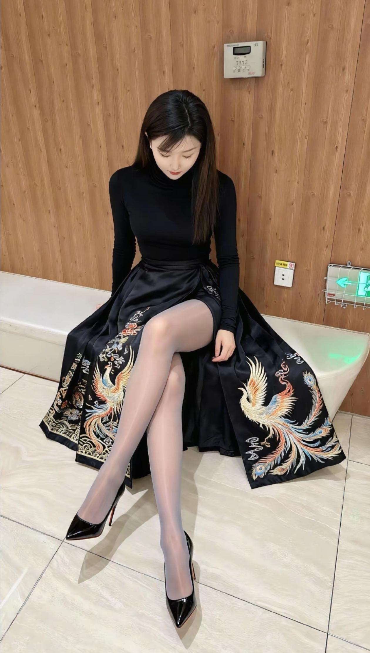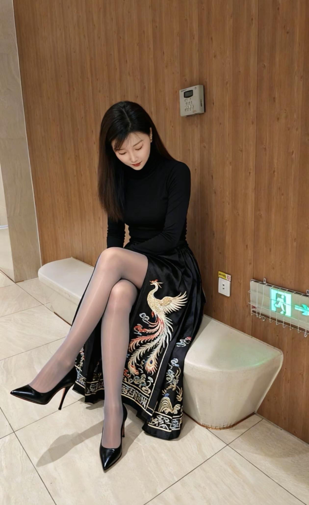 优雅黑裙搭配丝袜,尽显都市女性魅力!