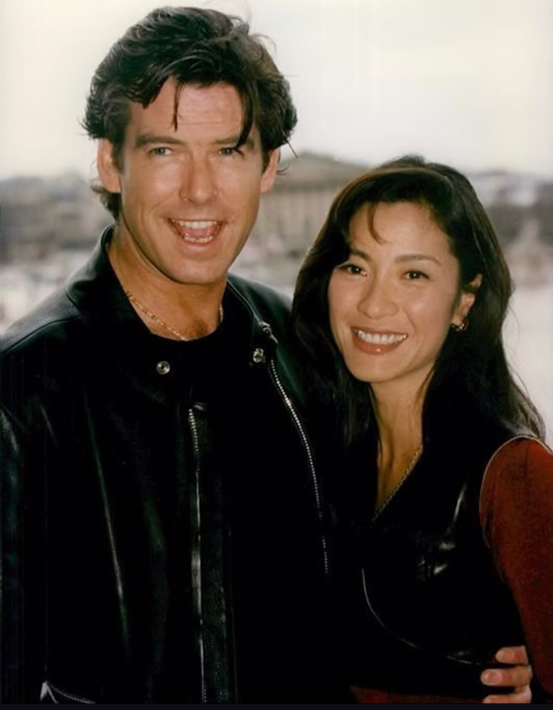 【来自投稿】1997年,杨紫琼(Michelle Yeoh)和皮尔斯·布鲁斯南(Pierce Brosnan)在《007之明日帝国》的首映礼上。