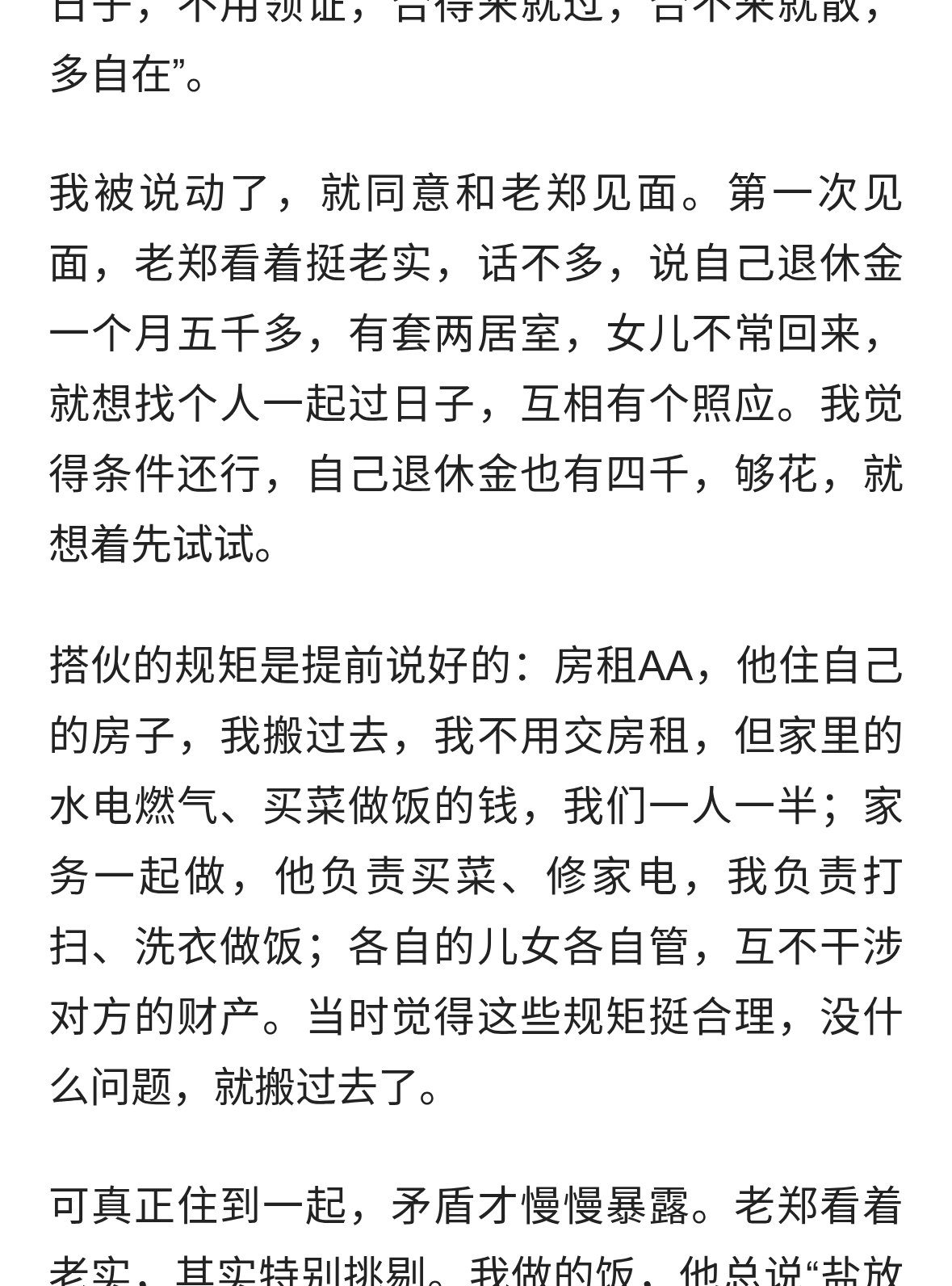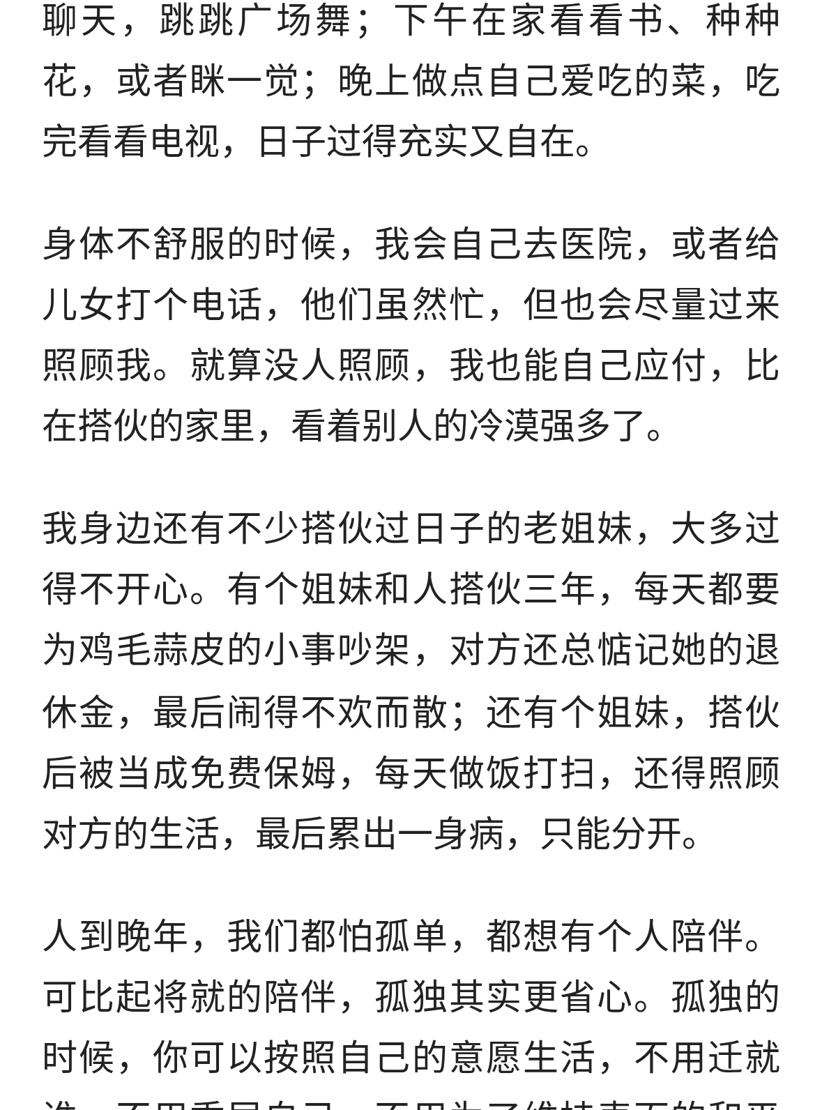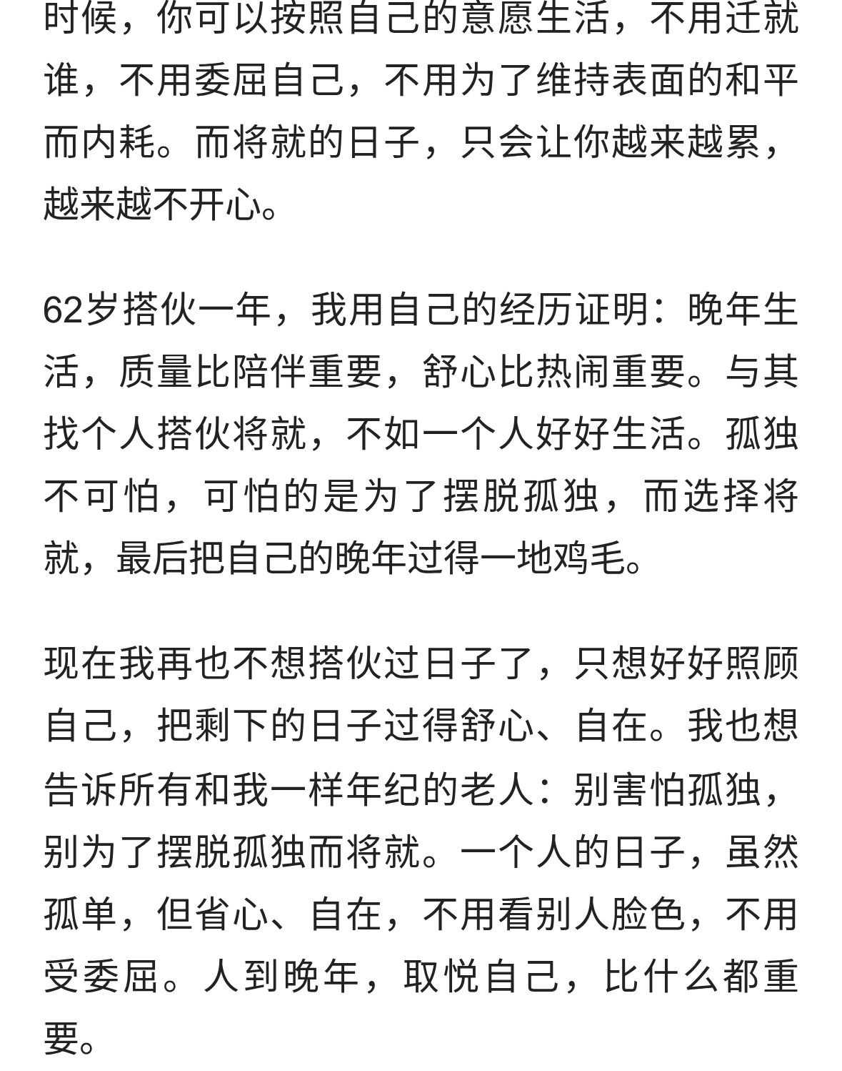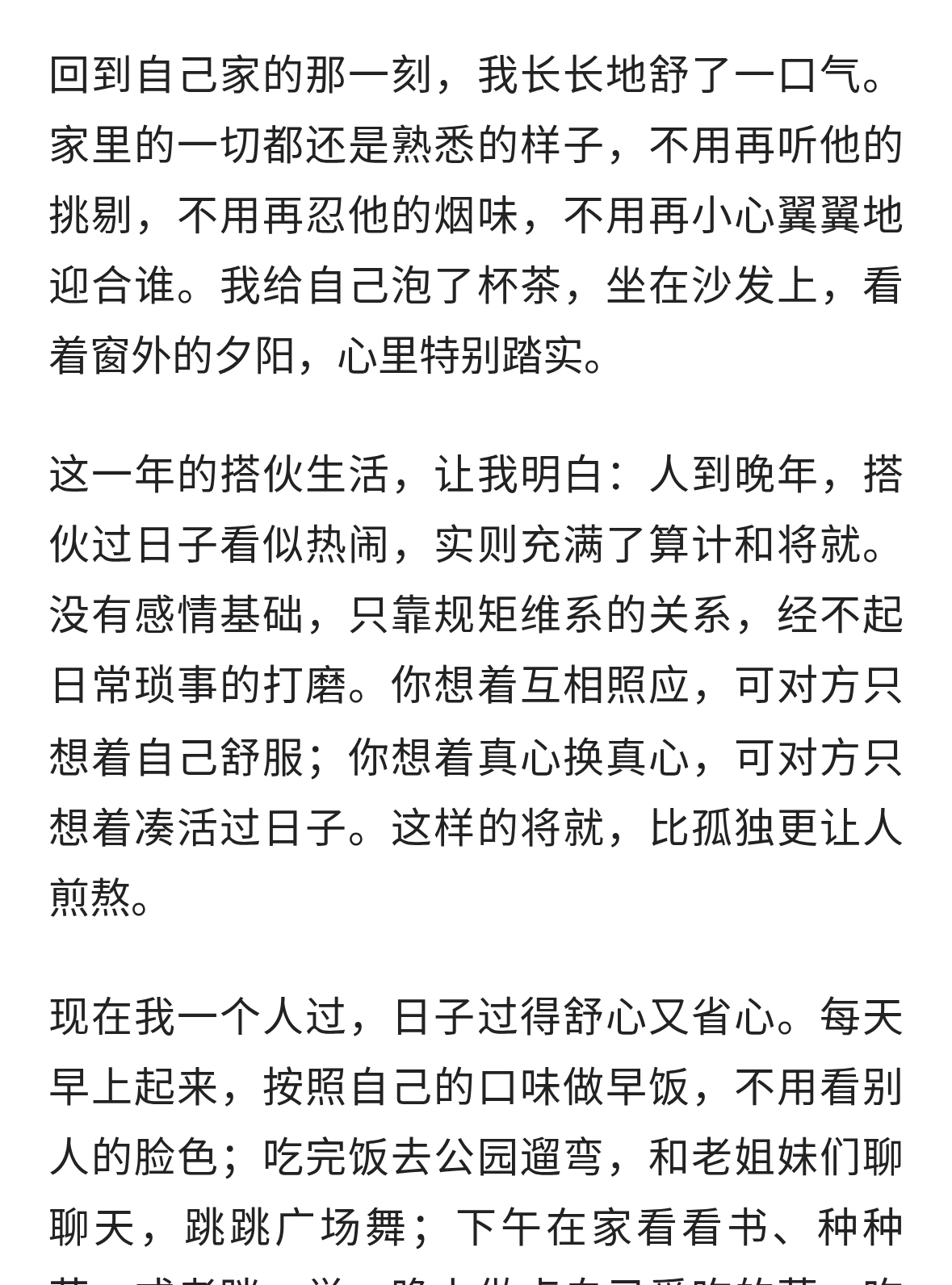 62岁搭伙过日子,一年后我懂了:孤独比将就省心多了