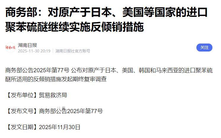 我国商务部出手,高市早苗最害怕的事情还是发生了! 不少人觉得,日本的高市早苗敢在台海问题上跳得那么高,肯定是不怕冲突升级。但其实她心里门儿清,中国不会轻易动武,真正让她坐立难安的,是中国的经济反制手段。如今这最担心的一幕,终究还是来了。 为啥经济反制能戳中她的要害?先看看日本当下的经济处境就知道了。现在的日本早不是当年的经济强国模样,通胀已经连续50个月没下来过,10月的核心通胀率还维持在3%,远超央行的目标。 物价飞涨让老百姓怨声载道,高市内阁没办法,砸出了创纪录的21.3万亿日元刺激计划,结果不仅没解决问题,还让本就高企的国债再添负担,债务总额都达到GDP的263%了,全球找不出第二个这么高的。 更尴尬的是央行,加息吧怕把刚有点起色的经济又打下去,不加息又压不住通胀,彻底陷入两难。 就在这种节骨眼上,中国商务部11月30日的公告,给了日本一记精准打击:对日本进口的聚苯硫醚(PPS)继续征收最高69.1%的反倾销税。 可能有人不清楚这东西的重要性,它可不是普通化工品,是高端制造业和军工领域的关键材料,从电磁弹射轨道到隐身无人机涂层都离不开它。以前日本靠着技术垄断,一边高价卖一边搞倾销,把中国市场当成提款机。 可他们没料到,中国企业砸了数十亿研发,几年时间就把高端PPS自给率从30%提到了85%,这下轮到日本企业慌了。 这69.1%的税率可不是小数目,直接让日本东丽、宝理这些龙头企业的成本暴涨,原本的价格优势荡然无存。华尔街测算过,要是对日出口腰斩,这些企业年利润得少8%,而这笔钱原本是高市计划用来支持军工发展的。 更绝的是,中国早就看穿了日本企业的小算盘,他们想跑到马来西亚设厂换个马甲避税,结果被调查直接戳穿——只要核心技术和控制权还在日方手里,不管厂子开在哪,都按日本税率算。 这一下,那些想两头套利的日企彻底傻了,已有三家中小PPS企业发出了停产预警。 高市的麻烦还不止于此。她之前喊着“产业链回迁”,可现在依赖PPS进口的日本下游企业,要么跟着涨价加剧国内通胀,要么只能把厂子搬到中国,完全跟她的口号对着干。 更讽刺的是,她一边在国会喊着“台湾有事就是日本存亡”,一边让企业靠对华出口赚钱养军工,去年卖导弹给菲律宾的钱,转头就靠PPS倾销从中国赚了回来。如今这税一收,等于直接断了右翼的“军工造血路”。 更让高市绝望的是,这还只是开始。商务部的复审调查要持续到2026年底,税率会根据日本的态度调整。要是她还死扛着不收敛涉台言论,汽车芯片、光学镜头这些日本支柱产业都可能成为下一个目标。 现在日本民众已经举着“高市下台”的牌子抗议,企业老板也排队去经产省哭诉。她想用涉台言论转移国内矛盾,没想到搬起石头砸了自己的脚。