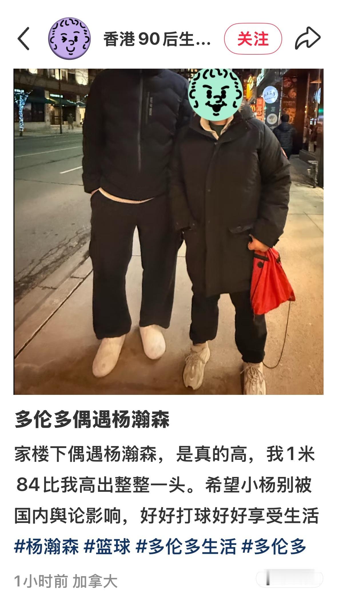 有球迷在加拿大多伦多偶遇杨瀚森,还合了影。正好小杨要随队打猛龙。
