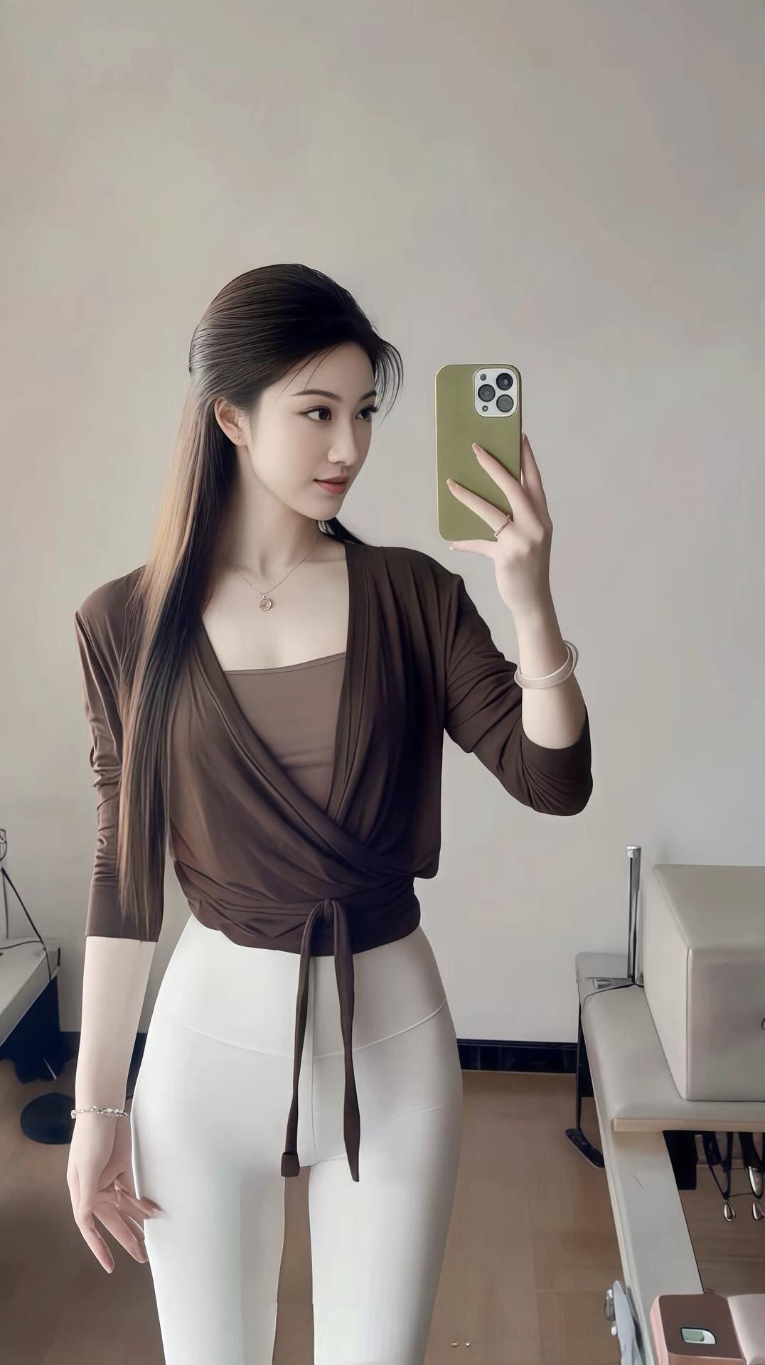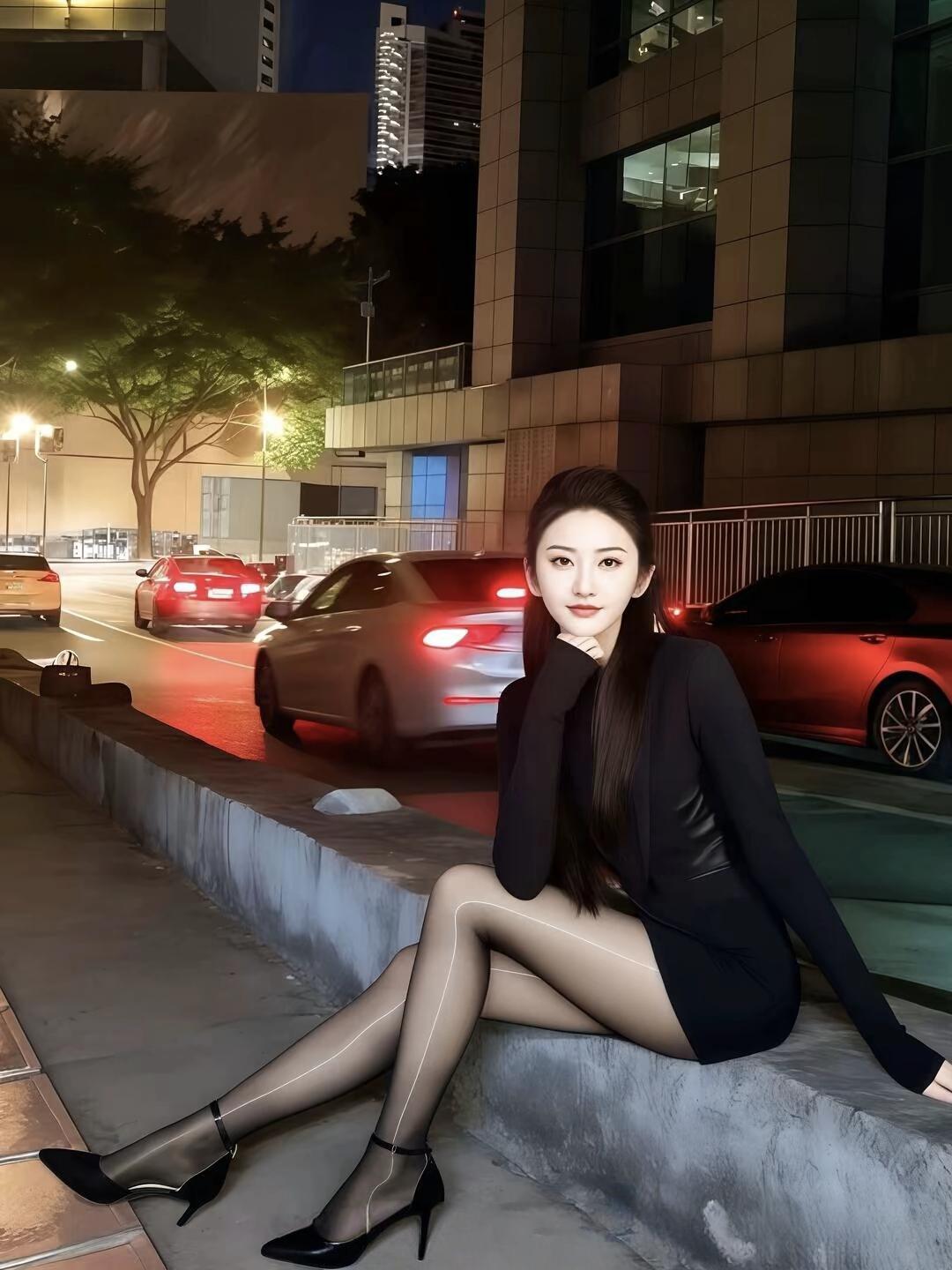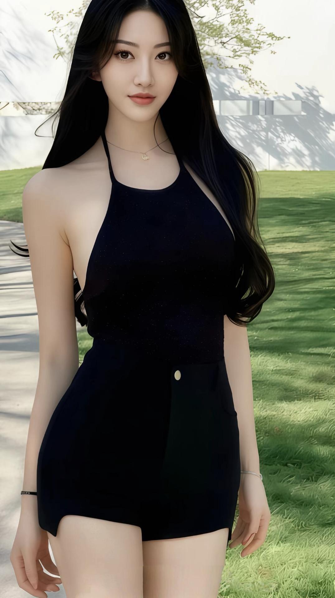 绿树掩映中,佳人倚栏立。礁石花影佳人