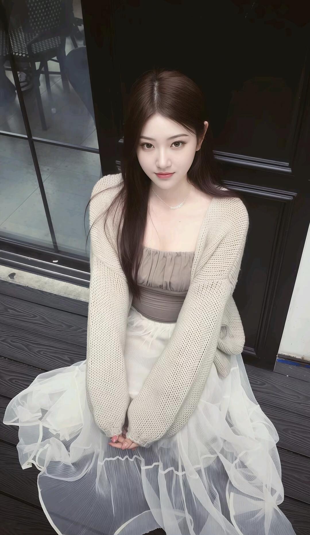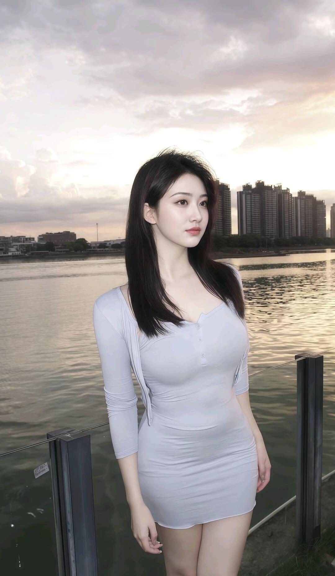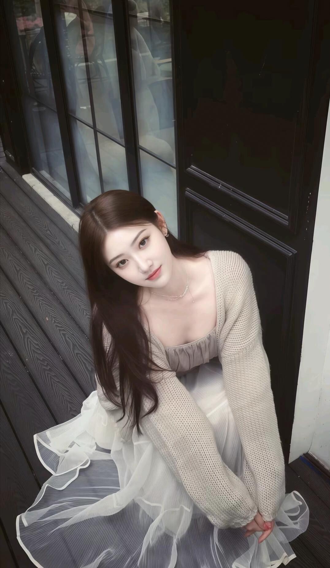 绿树掩映中,佳人倚栏立。礁石花影佳人