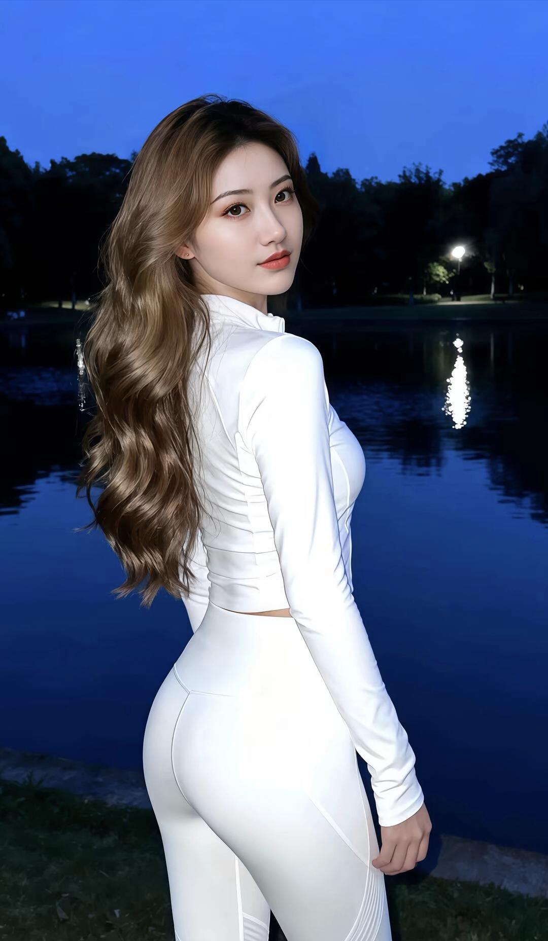 水边美人影,风姿绰约间。