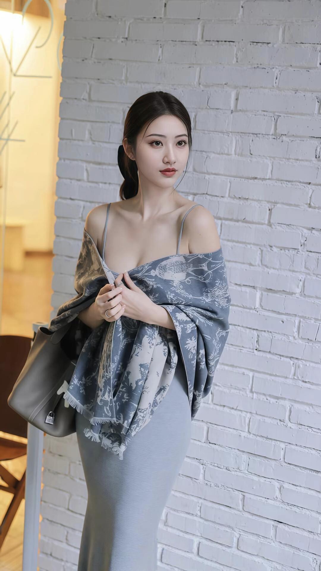 绿树掩映中,佳人倚栏立。礁石花影佳人