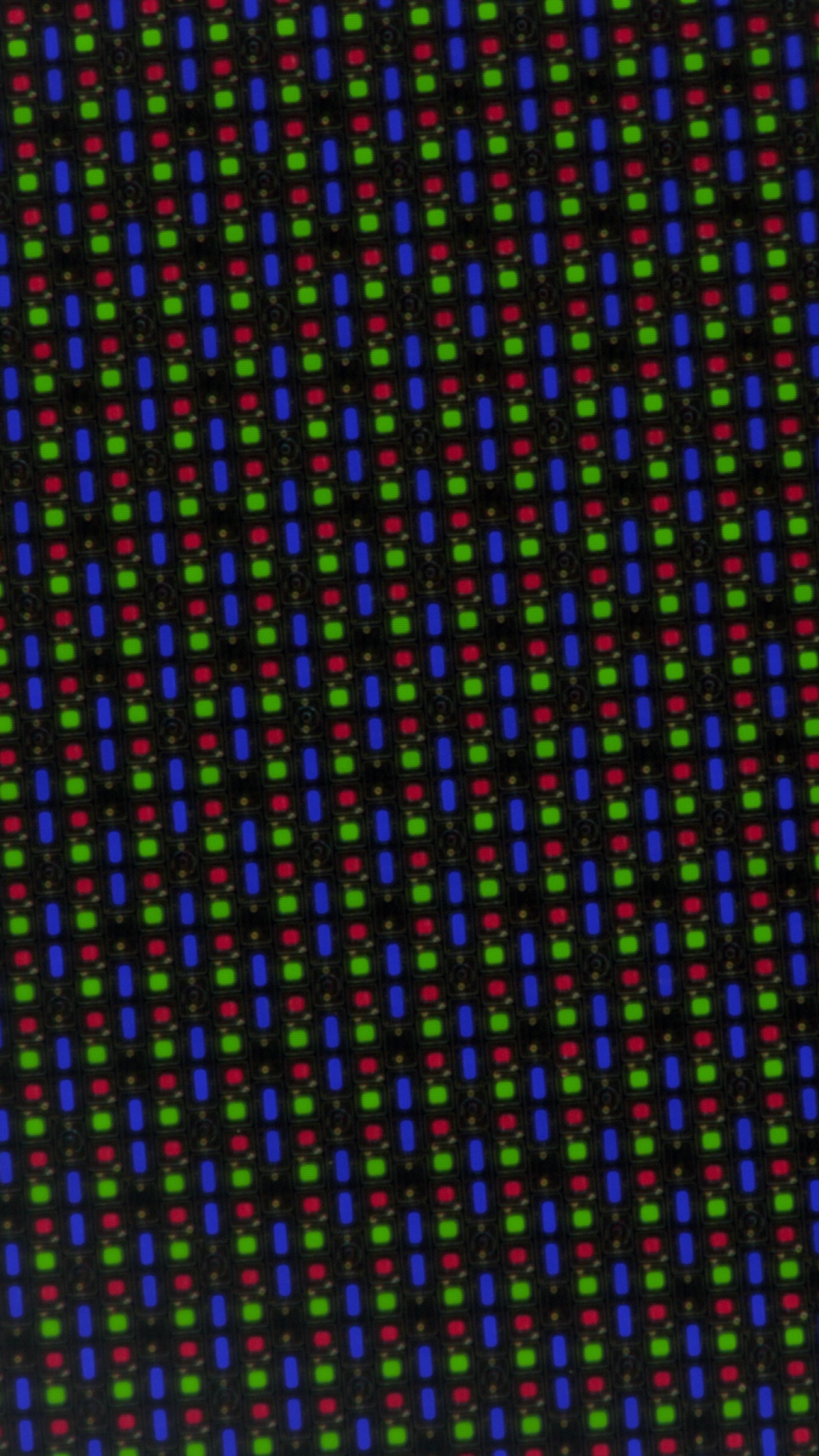 在同样倍率下小米17PM的超级子像素对比果子的17PM。 可见小米的子像素更小、更精细、三原色独立不借用子像素