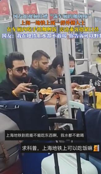 滚回自己的国家!11月25日,上海,几名印度人坐地铁时,竟然在大庭广众下吃手抓咖喱饭!车厢内瞬间弥漫起难闻的气味,周围乘客有的捂住口鼻,有的跑去其他车厢,地铁站回应:由于车内没有巡检人员,乘客发现后可以及时反馈。 这段视频很快在网上传开,网友根据车厢外露出的站名推测,事发地靠近浦东国际机场附近的凌空路地铁站。 当时车厢里满是通勤和出行的人,有人拖着行李箱,有人背着书包,大家都在安静赶路。这几名乘客端着热气腾腾的食物坐在座位上,手指沾满咖喱,自顾自地进食,完全没顾及周围人的感受。 刺鼻的气味让不少乘客下意识捂紧口鼻,还有人实在忍受不了,拖着行李换到了其他车厢。有乘客用手机记录下这一幕,视频里的咖喱味仿佛能透过屏幕飘出来,很快引发了网友热议。 有人吐槽自己在地铁里连水都不敢随便喝,没想到还有人公然 “野餐”,更有人情绪激动地发出不当言论。事件发酵后,上海地铁在 26 日下午回应,已经核实事件发生在 2 号线,明确表示车厢内禁止饮食,尤其是有刺激性气味的食物。 工作人员介绍,按照规定,乘客若有进食需求,可到站台上解决,或向工作人员求助。对于此次未能及时制止,地铁方面解释是因为车内没有巡检人员,同时给出了具体的反馈方式:遇到类似情况可告知现场工作人员,或拨打服务热线 64370000。 其实早在 2020 年 12 月 1 日,新修订的《上海市轨道交通乘客守则》就已明确规定,列车车厢内禁止饮食、大声喧哗。守则里还特别提到,禁止携带有严重异味、未经安全包装的物品进站乘车,就是为了保障所有乘客的乘车环境。 上海作为国际化大都市,每天都有来自世界各地的人,文化差异确实存在,但遵守当地公共规则是基本前提。不管是哪国人,到了一个新的城市,都该主动了解并遵守当地的规定,这既是尊重他人,也是自身素养的体现。 类似的情况并不是第一次发生,之前深圳地铁也出现过外籍乘客当众吃手抓饭的情况,米粒掉得满地都是。还有网友反映,个别外籍人士在景区下水搓澡、在路边随意排泄等行为,都超出了文化差异的范畴,触碰了公共文明的底线。 很多公共场合都设有中英文双语提示,地铁里也会反复广播文明乘车须知,这些规定并不难知晓。让人疑惑的是,为什么这类违规行为还是会发生?是真的没看到提示,还是觉得可以 “特殊对待”? 地铁方面说因没有巡检人员未能及时制止,这确实暴露了管理上的漏洞。作为连接机场的重要线路,2 号线外籍乘客较多,或许可以考虑增加重点路段的巡检频次,或者在车厢内设置更醒目的双语禁食标识。 另外,反馈机制虽然有,但很多乘客遇到这种情况时,可能不好意思直接上前制止,拨打热线又怕来不及。 其实大家愤怒的不是文化差异,而是 “规则只针对一部分人” 的不公平感。国内乘客如果在地铁里吃泡面、吃东西,通常会被及时劝阻,严重的还可能面临处罚,外籍乘客也不该有例外。 公共空间的文明需要大家共同维护,地铁不是私人场所,每个乘客都有权利享受干净、舒适的乘车环境。 对于地铁运营方来说,不能只在事发后回应,更要提前做好预防,比如加强进站安检时对异味食物的管控,增加广播提示的频次。 而作为乘客,遇到违规行为时,也可以通过合理合法的方式反馈,没必要说过激的话,既解决不了问题,还可能引发新的矛盾。 毕竟大部分来中国的外国人都是守规矩、讲文明的,不能因为少数人的不当行为,就否定整个群体。 真正的国际化,不是无底线的包容,而是所有人都在同一套规则下相处,互相尊重、互相体谅。