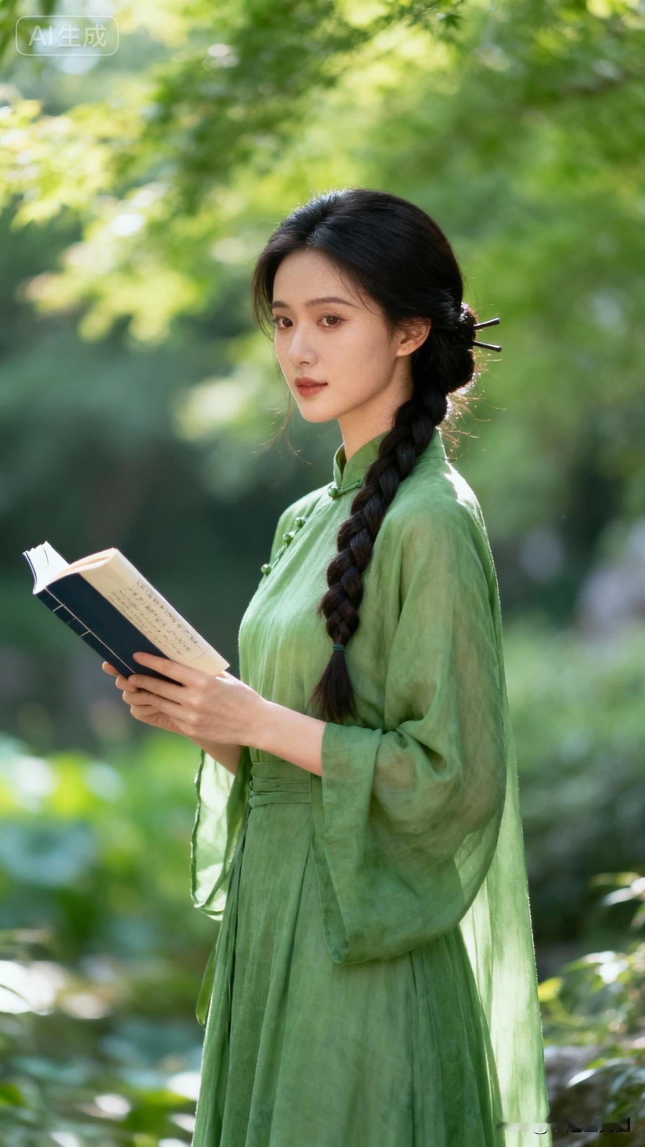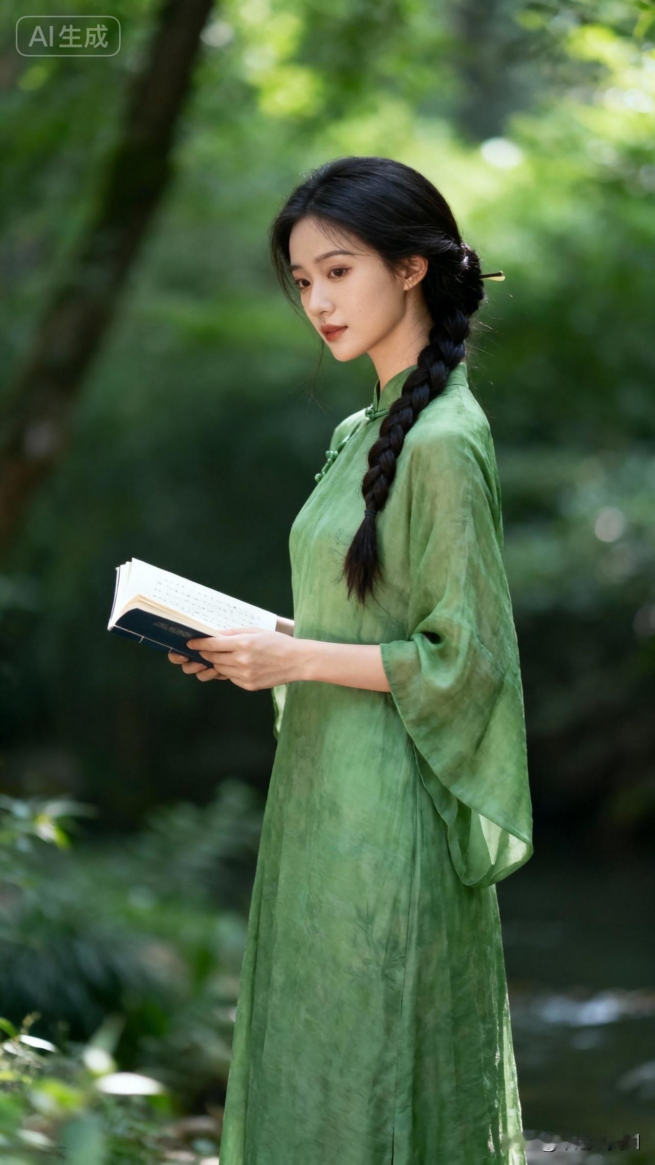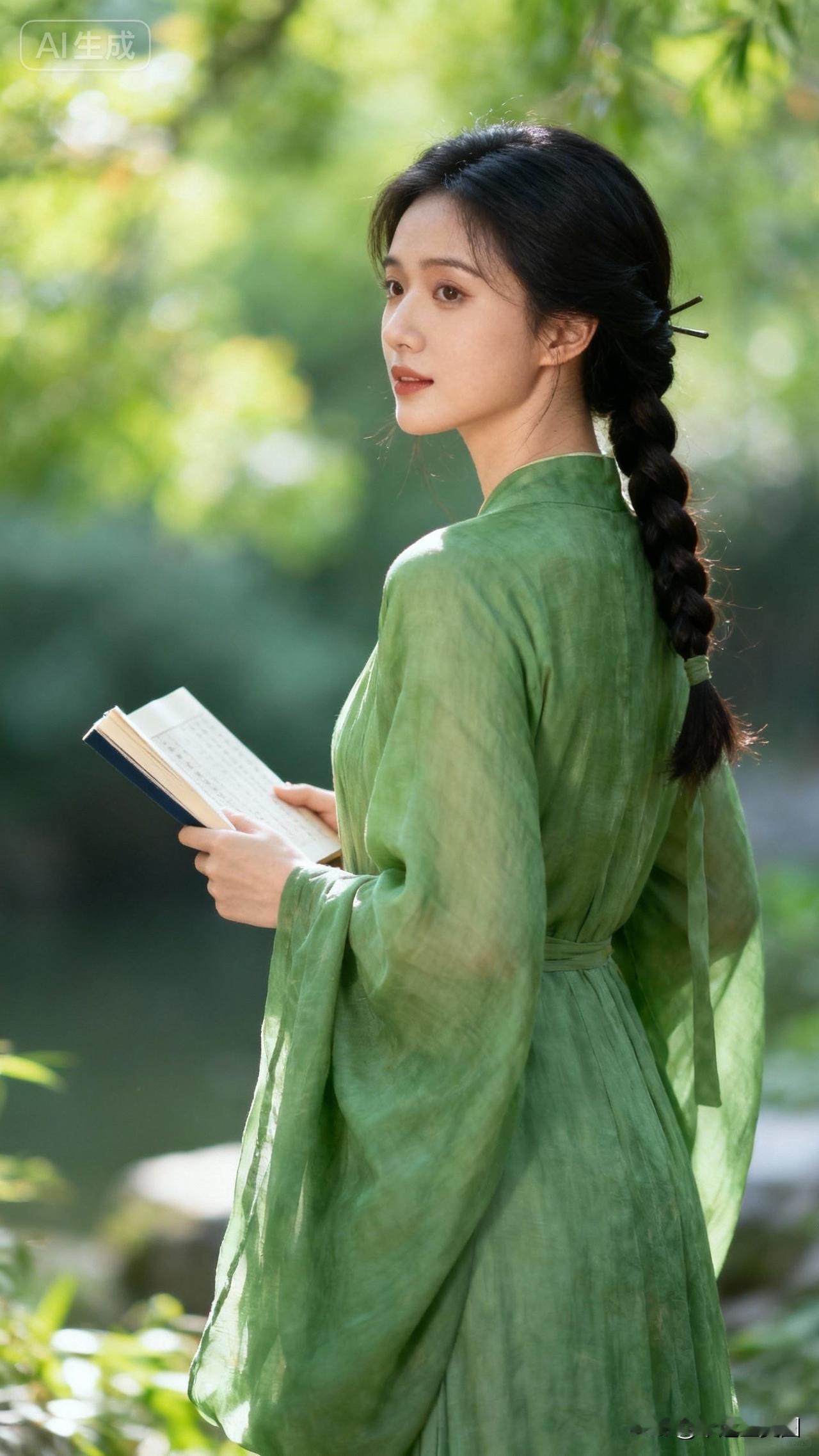 “绿衣少女,静谧书香,岁月静好”📖🌿