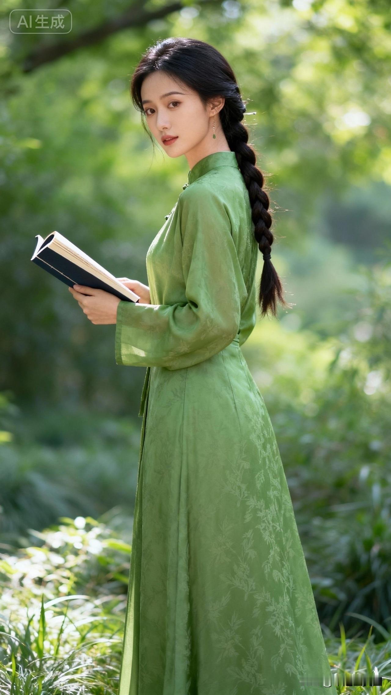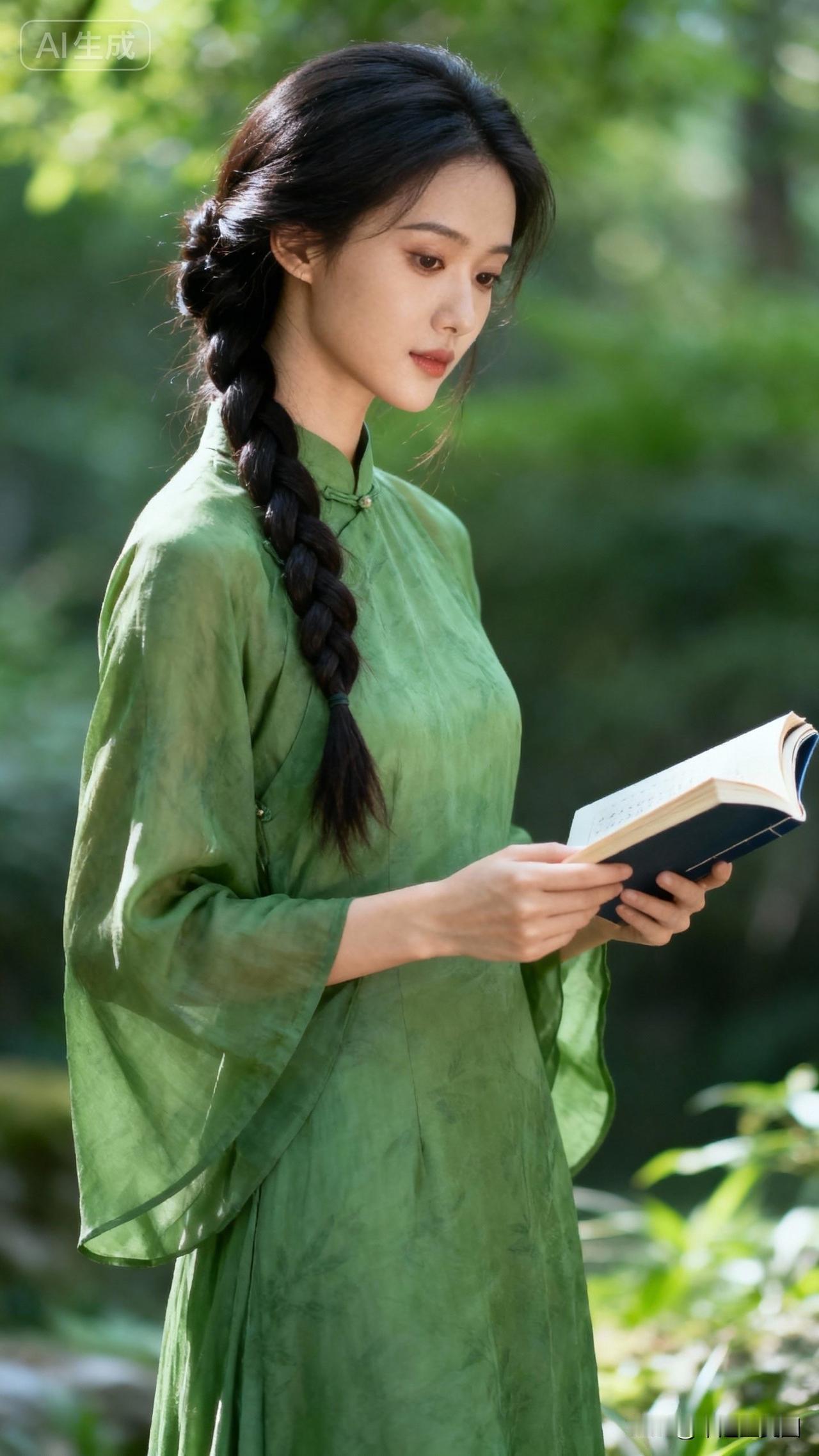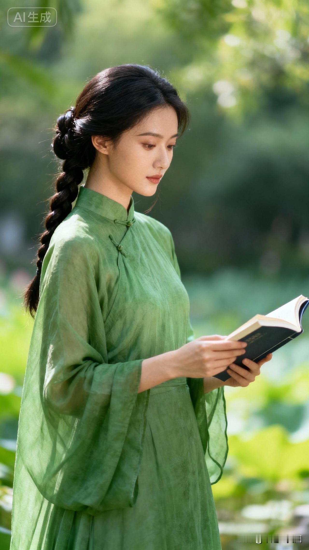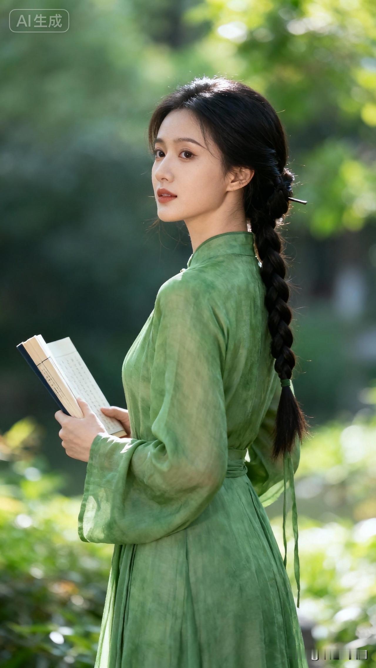 “绿衣少女,静谧书香,岁月静好”📖🌿
