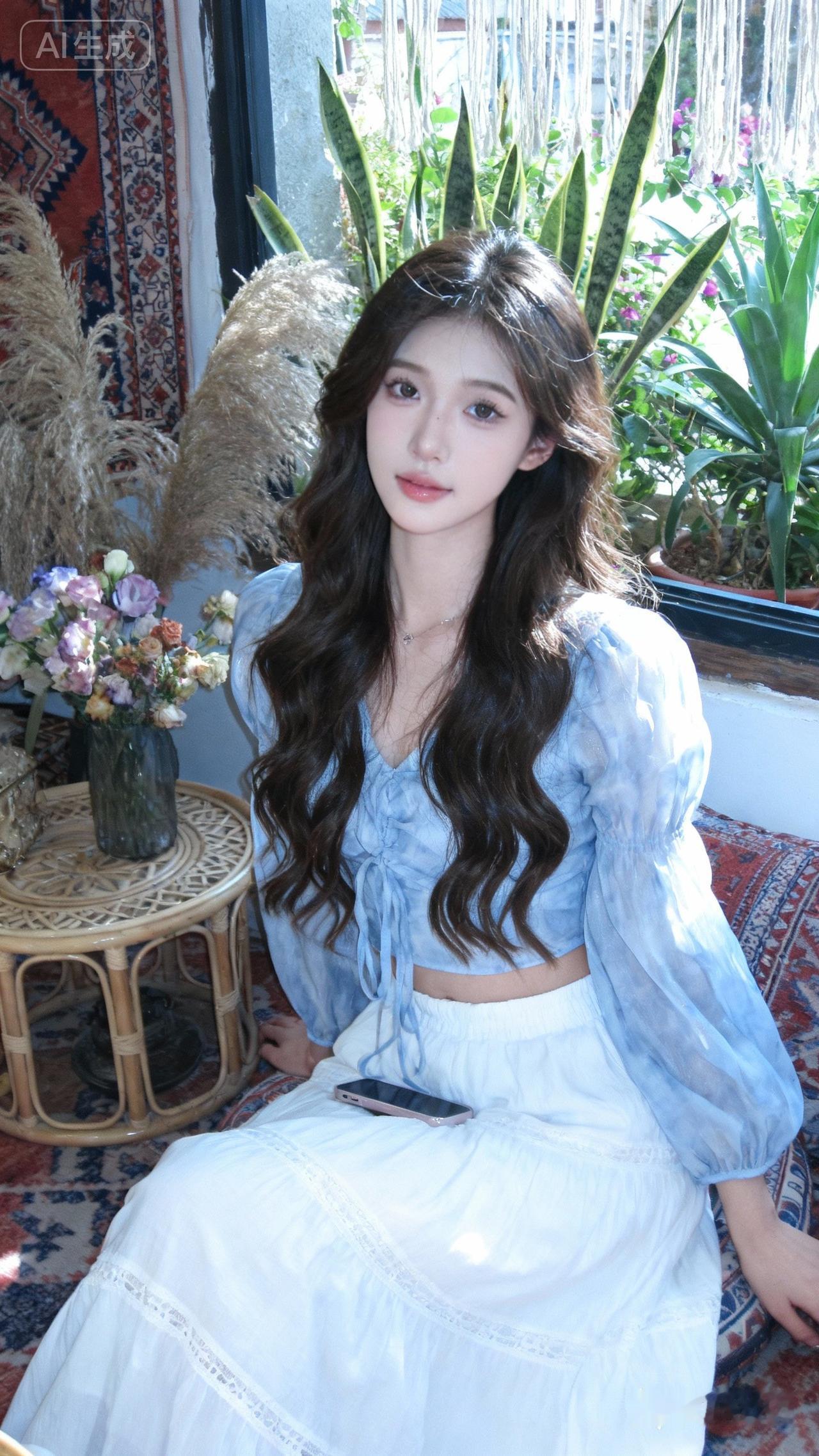 夏日清新穿搭,粉色花丛中的甜美少女一起享受大自然的美#