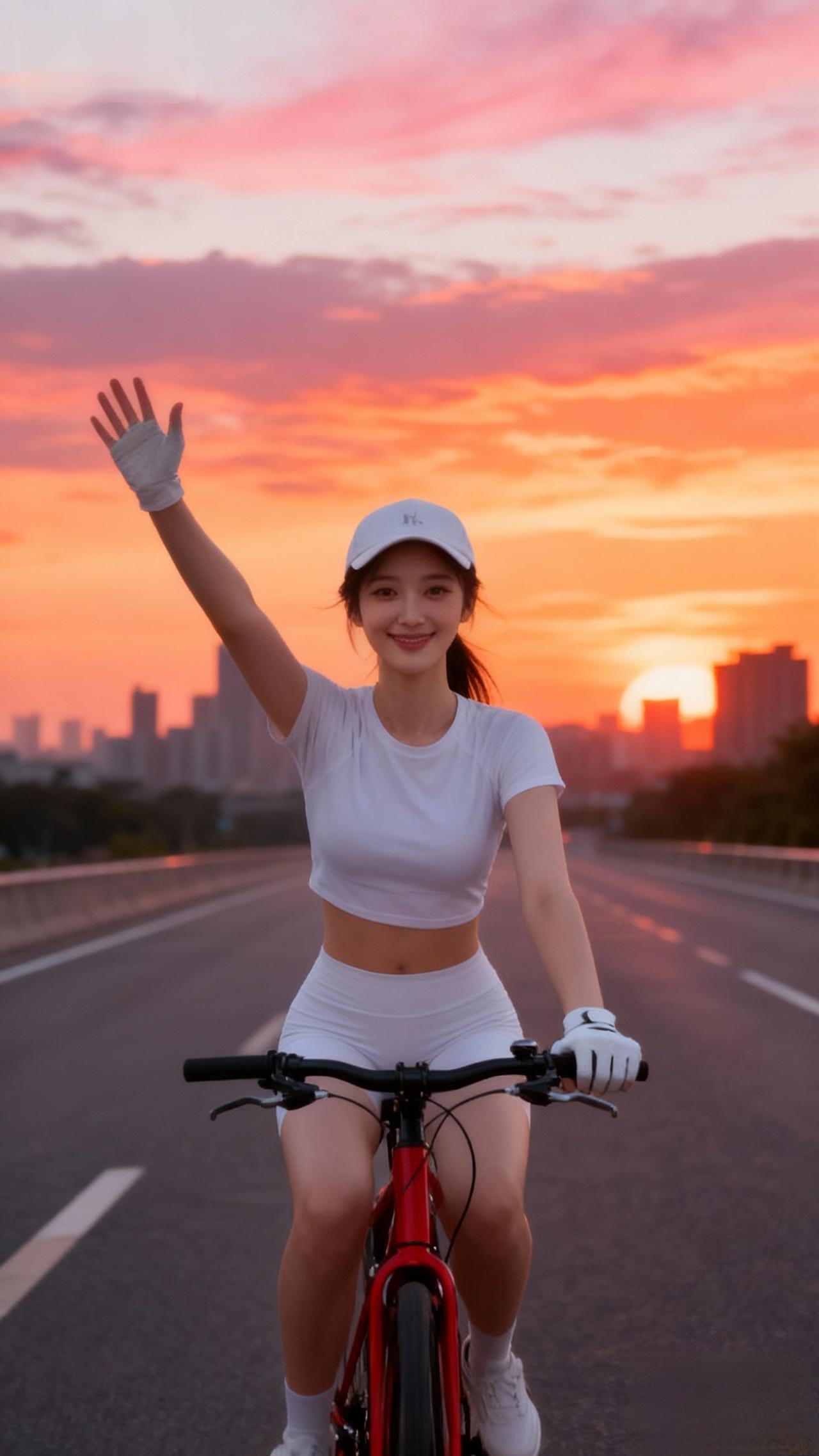 夕阳下的骑行少女,自由自在,活力满满!🌅🚴♀️💪