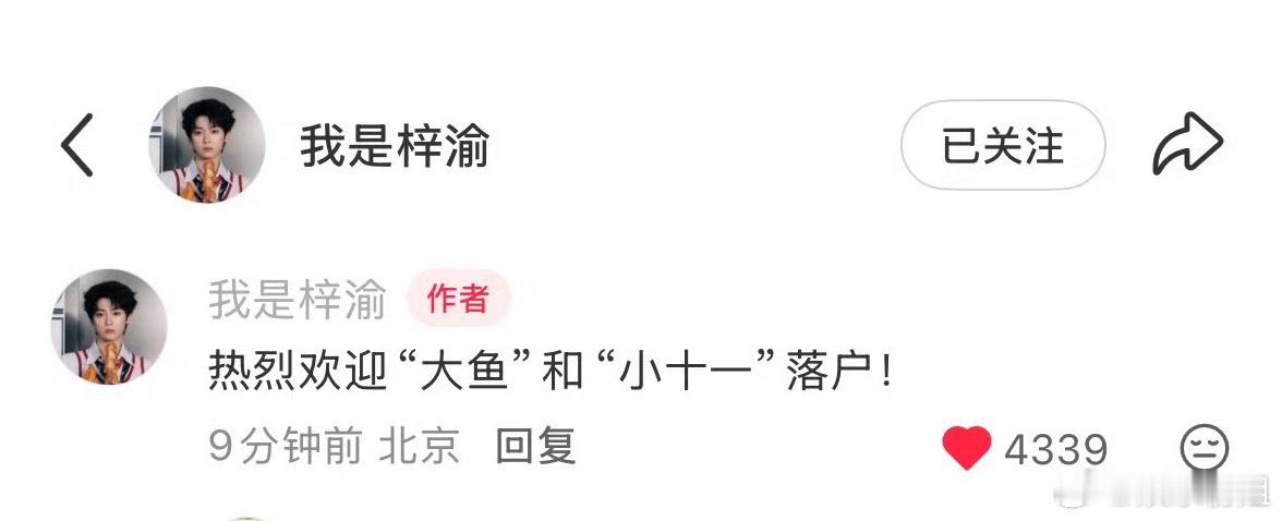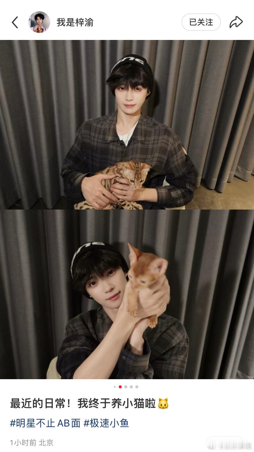 梓渝终于养猫了 梓渝晒与猫合照,热烈欢迎"大鱼" 和 "小十一"落户!好可爱的猫