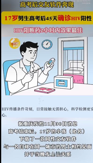 高考结束那天,17岁的小张盯着手机屏幕上的录取通知书,心里像揣了只扑棱棱的小鸟重点大学的校门正向他敞开,压抑了三年的压力突然有了释放的出口。他下载了一款同性交友软件,指尖滑动间,一个自称在同城上大学的男生主动搭话,两人聊得投机,对方热情邀约见面。小张没多想,收拾行李就赶了过去,当晚便发生了无保护性行为。分开时,他甚至没留对方的联系方式,只当是场“成年人的冒险”。 一周后,这场冒险的代价找上门来。小张开始持续发烧,吃了退烧药也不见好,嗓子疼得咽口水都像吞刀片,脖子上还冒出几个硬疙瘩。他以为是普通感冒,直到刷短视频时看到“HIV急性期症状”,心里“咯噔”一下发热、淋巴结肿大、皮疹……这些症状全对上了。他慌慌张张网购了HIV试纸,按照说明书滴上血,两条红线刺得眼睛生疼。抱着最后一丝侥幸,他跑到疾控中心,医生看着快检结果叹了口气:“阳性,需要进一步确证。” 小张当场红了眼眶。他想联系那个男生问清楚,可聊天记录早随着软件卸载消失,连对方的名字和住址都不知道。他蹲在疾控中心门口,手里攥着确诊报告,眼泪砸在纸上晕开墨迹:“我才刚考上大学啊……” 这并非孤例。疾控中心的数据显示,近年来15-24岁青年学生艾滋病感染率逐年上升,超八成是通过社交软件结识性伴侣,其中男男性行为感染风险是异性行为的20倍。更让人揪心的是,超六成大学生不知道“暴露后72小时内服用阻断药成功率超90%”,甚至有人误信“单次检测阴性就安全”,结果错过黄金阻断期。 小张的悲剧,撕开了青少年防艾教育的缺口。长期应试压力下,高考后的“报复性放纵”成了普遍现象,可家庭和学校却集体失声62%的父母从未和孩子聊过性安全,学校的性教育课只讲生理结构,不教“如何拒绝无保护行为”“72小时应急流程”这些实操知识。更讽刺的是,多所高校的HIV自检试剂机因“敏感”被闲置,偏远地区的学生发生高危行为后,甚至要奔波上百公里才能拿到阻断药。 隐私焦虑也在推波助澜。50%的学生因害怕被贴上“不检点”的标签拒绝检测,广东一名感染者隐瞒病情至并发重症,只因担心“被退学”。这种歧视环境,让早期干预成了奢望。 小张的故事像面镜子,照出了我们对待性教育的逃避、对感染者的偏见,以及防护体系的漏洞。当一纸录取通知书和HIV确诊报告同时抵达,我们该反思:如何让青春的“冒险”不再付出如此惨痛的代价? 来源:陕视新闻