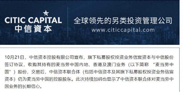 不得不说个麦当劳的笑话!2017 年麦当劳把中国业务80%股份用20亿美元价格卖给中信和凯雷,中信是52%+凯雷是28%,自己保留20%。6年后,麦当劳总部又花18亿美元收了凯雷的28%股份,凯雷赚晕了。 可能有人要问,麦当劳总部当年为啥要卖?那时候它在中国开了27年,到2016年底也就2400多家店,大多挤在一二线城市,想下沉却没本地资源。 中信和凯雷的组合刚好补上短板,2017年交易完成后,麦当劳中国就改叫“金拱门”,董事会里一半是中国本土人士,不用事事跟芝加哥总部汇报。 这本土化改得是真见效,之前一年也就开200家店,改成金拱门后年均开1000家,到2025年8月门店数飙到7100多家,是2017年的3倍还多。 更为关键的是,下沉市场已然开启。如今,近半数门店分布于三四五线城市。待青海、宁夏的门店于今年开业,便将实现全国省级行政区的全面覆盖,这在2017年简直是不敢想象之事。 供应链也跟着本土化,90%食材从国内买,本土供应商占了近6成,每年能推100多个新品,像“肉霸堡”“叠叠卷”都是摸准中国人胃口搞的。 数字化也没落下,450人的IT团队全自研技术,90%的订单靠手机或自助机完成,6000多家店都有智能取餐柜,App下载量破了1.3亿次。 大伙说说,要是没当年那笔交易,麦当劳能这么快吃透中国市场吗?凯雷这钱赚得看似轻松,其实是赌对了中国消费市场的潜力。 再看麦当劳总部,2017年卖股份时收了20.8亿美元,还保留品牌使用权,6年后花18亿美元买回来48%股份,手里的中国业务体量早翻了几倍。 凯雷退出也不是偶然,它本来就是财务投资者,2023年11月卖股份时,这笔投资回报率高达6.7倍,说是它最成功的在华投资之一都不夸张。 中信倒是一直稳坐控股股东,2024年10月又从中信股份手里接了部分股份,牢牢握着52%的控制权,跟麦当劳总部形成52:48的持股格局。 现在再回头看这桩交易,哪是简单的“卖”和“买”?麦当劳借本土资本铺路,中信靠品牌赚成长红利,凯雷精准踩点赚差价,三方都没亏。 咱普通人看这个笑话,其实能明白一个理:商业合作里没有绝对的吃亏,找对伙伴补对短板,哪怕一开始看似“亏了”,最后也能双赢。 中国市场的魅力就在这,不管是百年外企还是国际资本,只要愿意放下身段本土化,就能吃到红利,这比任何算计都管用。 信息来源: 中国网——2017-01-10德媒:竞争激烈!麦当劳“拱手相让”中国业务 中国商报——2023-07-14 麦当劳中国回应或将易主:所有权结构不变 要开1万家餐厅