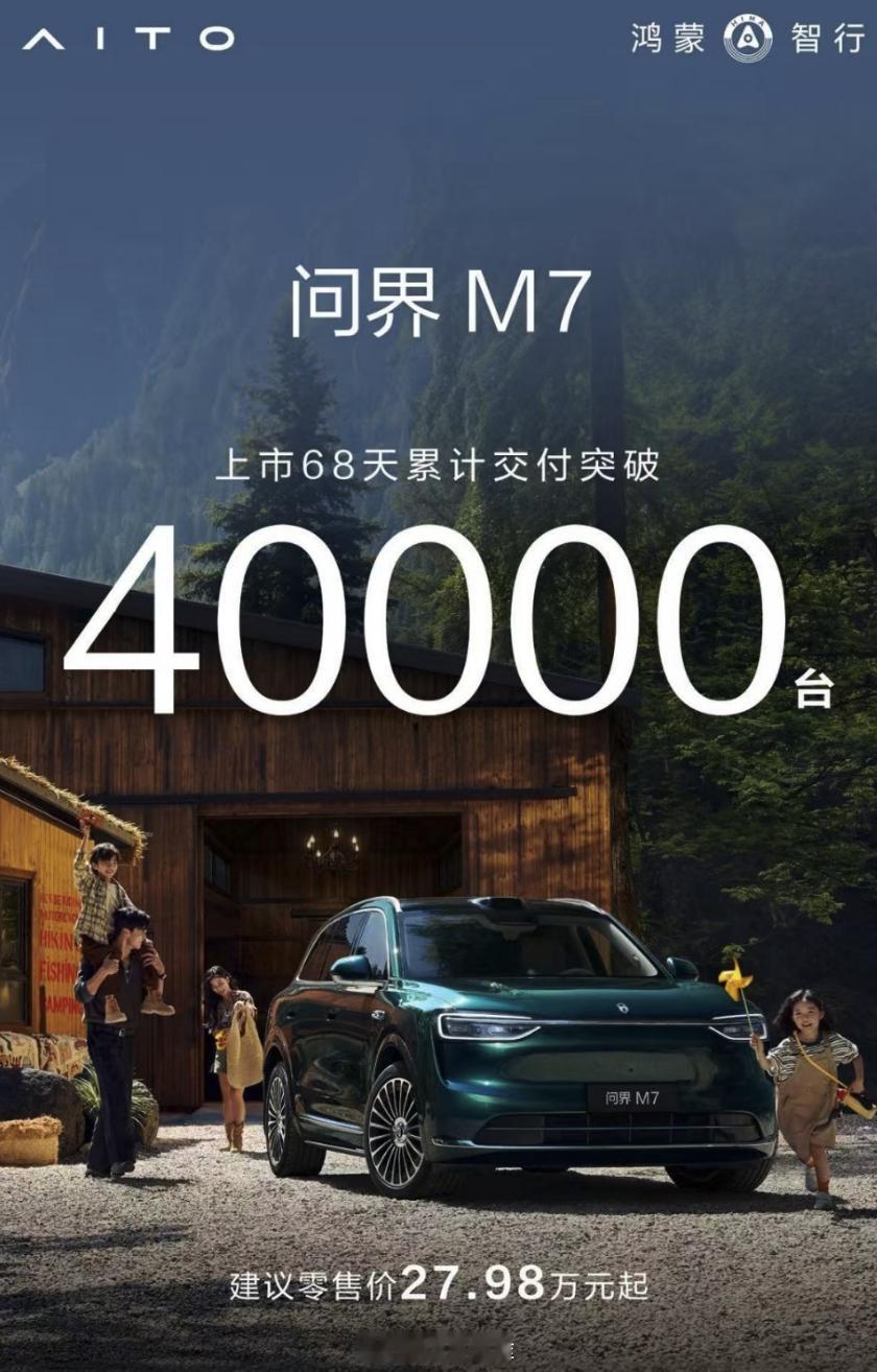 问界 M7 上市 68 天交付破 4 万,距离破 3 万才过去 11天42how问界新m7