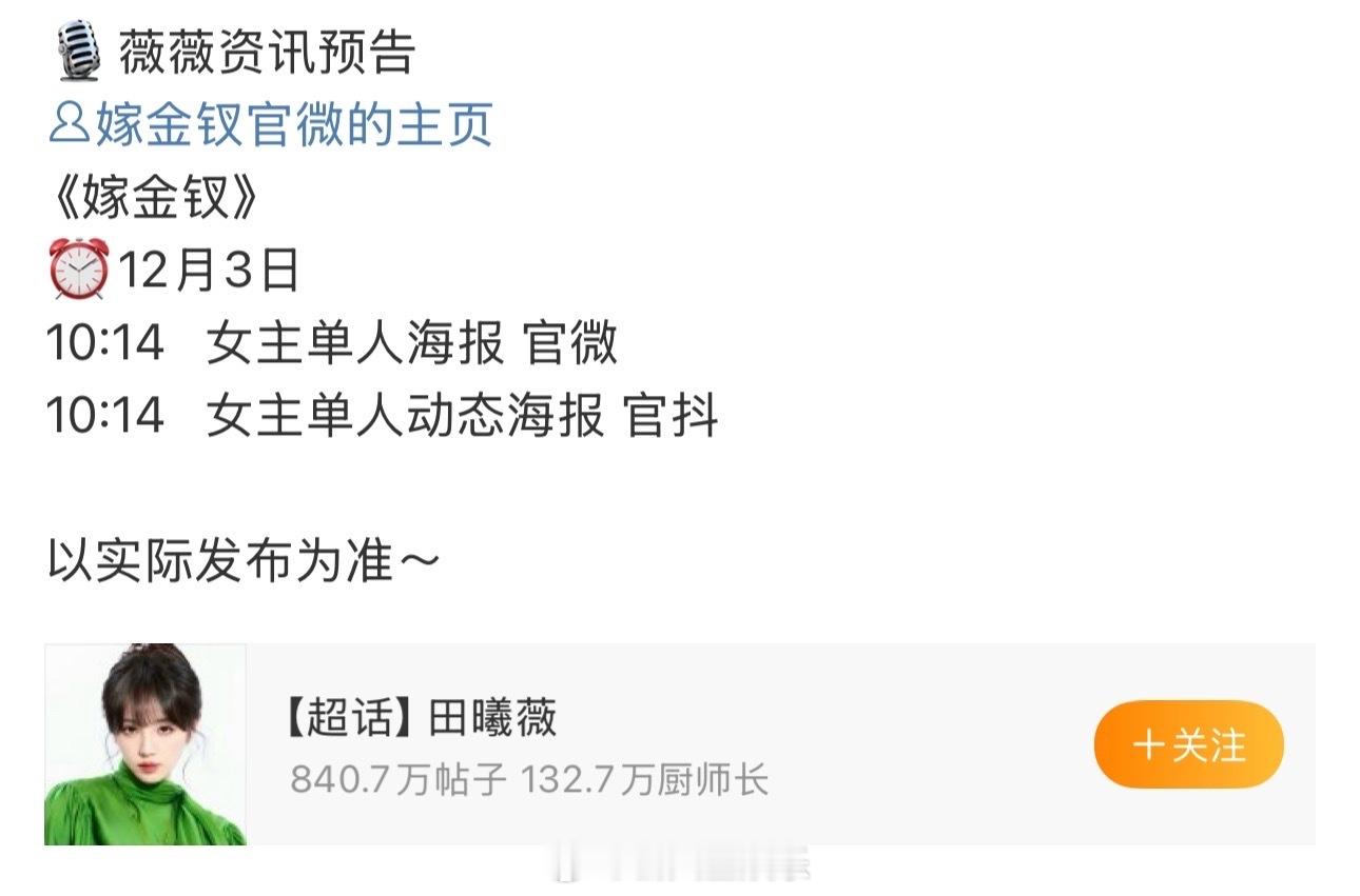 我将燥候这个《嫁金钗》🤲嫁金钗官宣预热田曦薇嫁金钗宣发预热