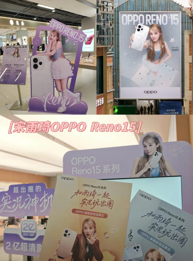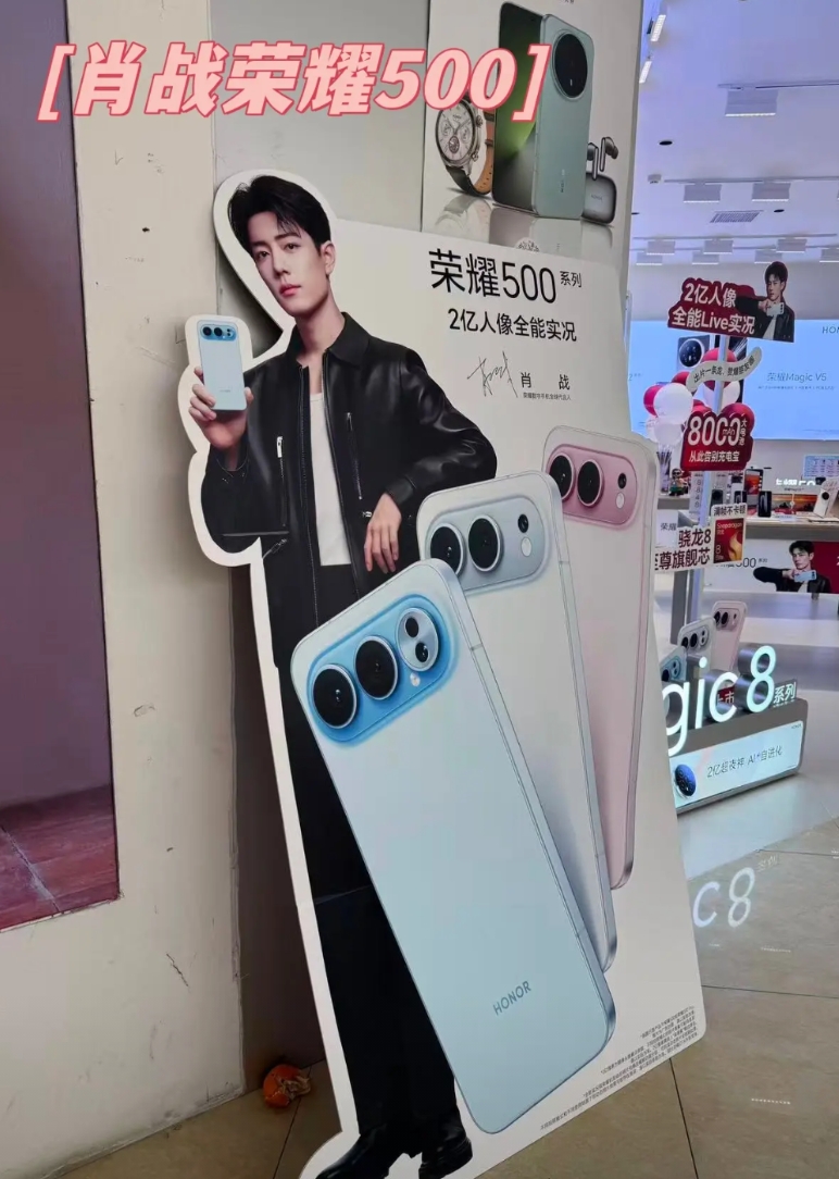 路遇顶流立牌,肖战宋雨琦都很火啊? 昨天出去逛商场,两家手机店都整上明星立牌了 荣耀这边是肖战 OPPO这边是宋雨琦 两家的新手机看着颜值都不错啊 就是荣耀500有丢丢像iPhone 感觉Reno15这个配色和蝴蝶结更符合女生审美 听说拍live也很好看? 不知道你们选谁呢?