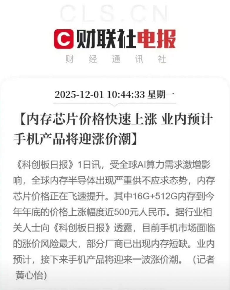 手机今年要趁早买 明天手机性价比绝对比较差了 无论媒体 还是产业链 都在传递内存要涨价 而且幅度很大20%以上 这样增幅对于消费者来说 可不是什么好消息 会降低换机欲望 所以大家年底想换手机的 尽快换吧 别等了 另外申明一下 涨价也是新机 今年发布的手机 明年购买也没有太大影响 只是降价没有往常多喽
