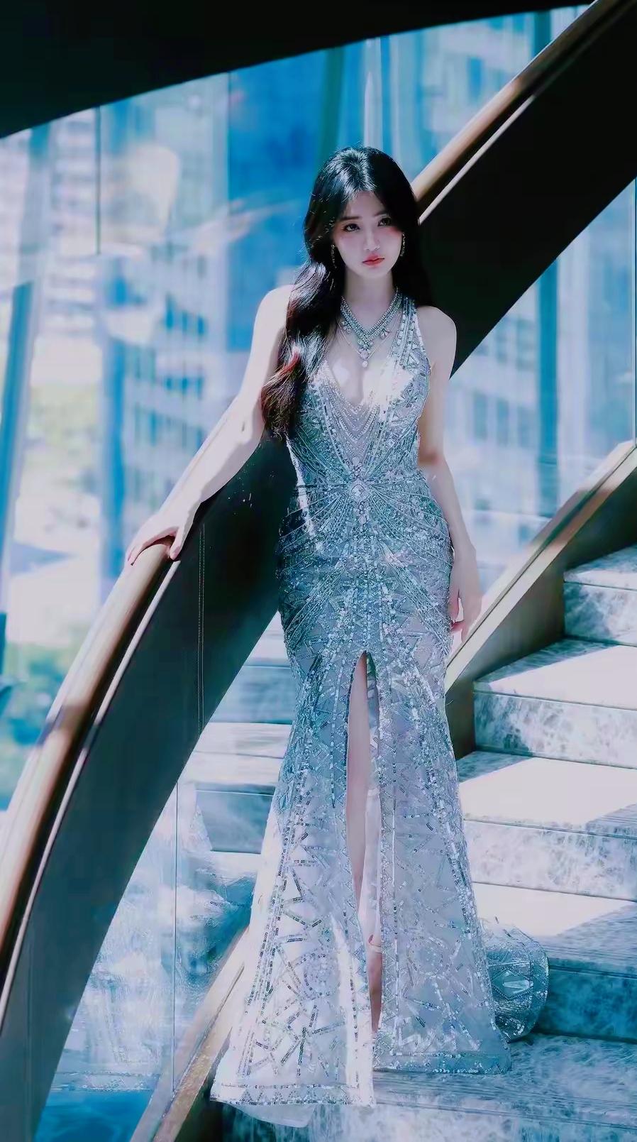 分享娱乐徐璐穿低胸长裙秀优越身材双手捧花典雅又大气
