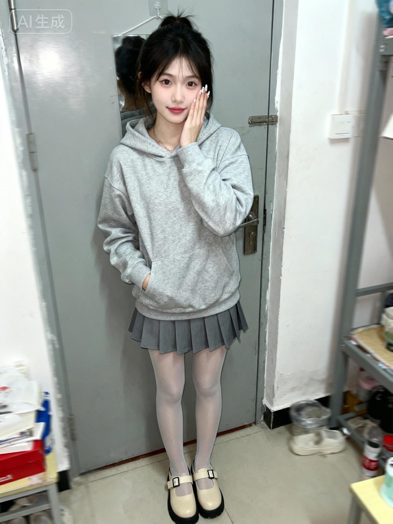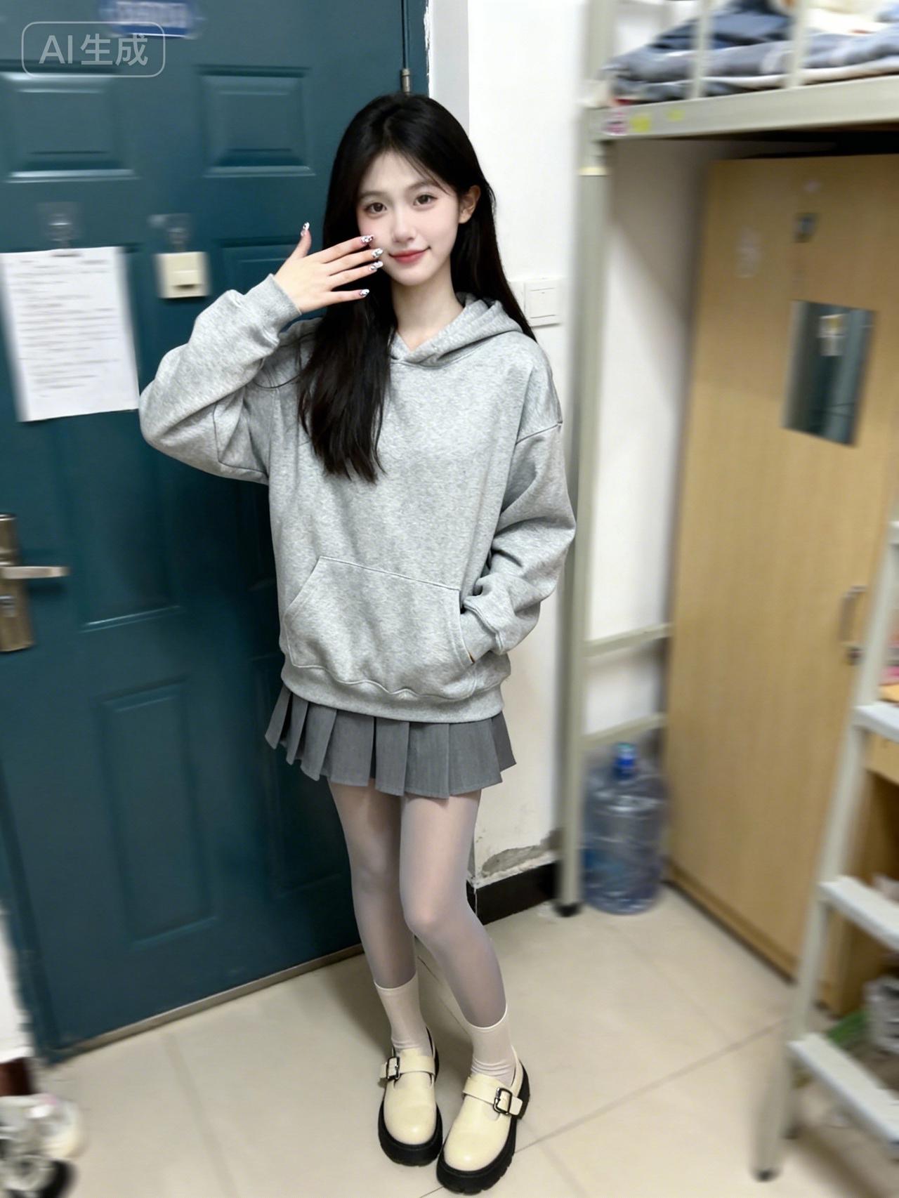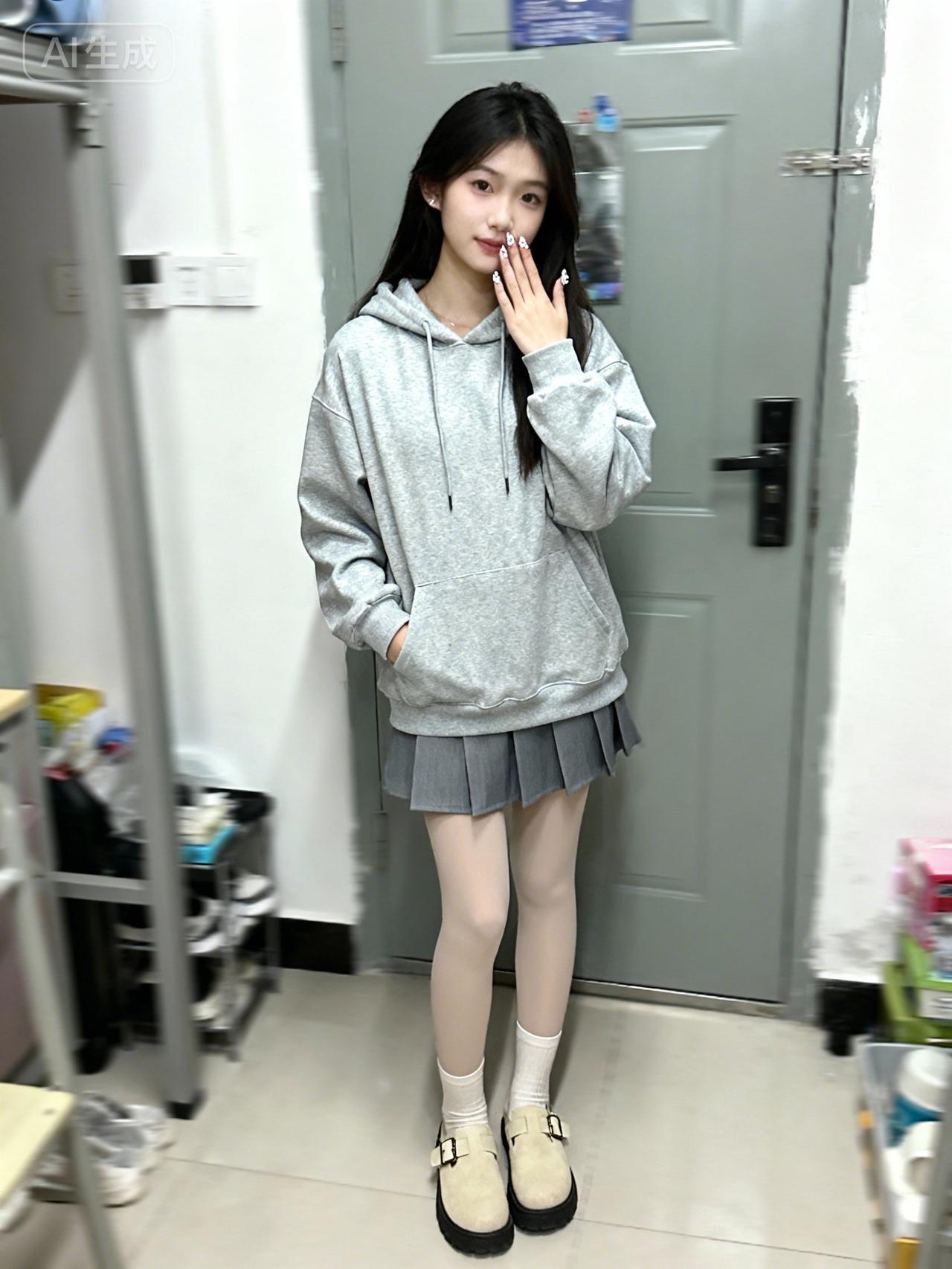 元气少女穿搭指南:灰色卫衣+百褶裙,青春活力满满!