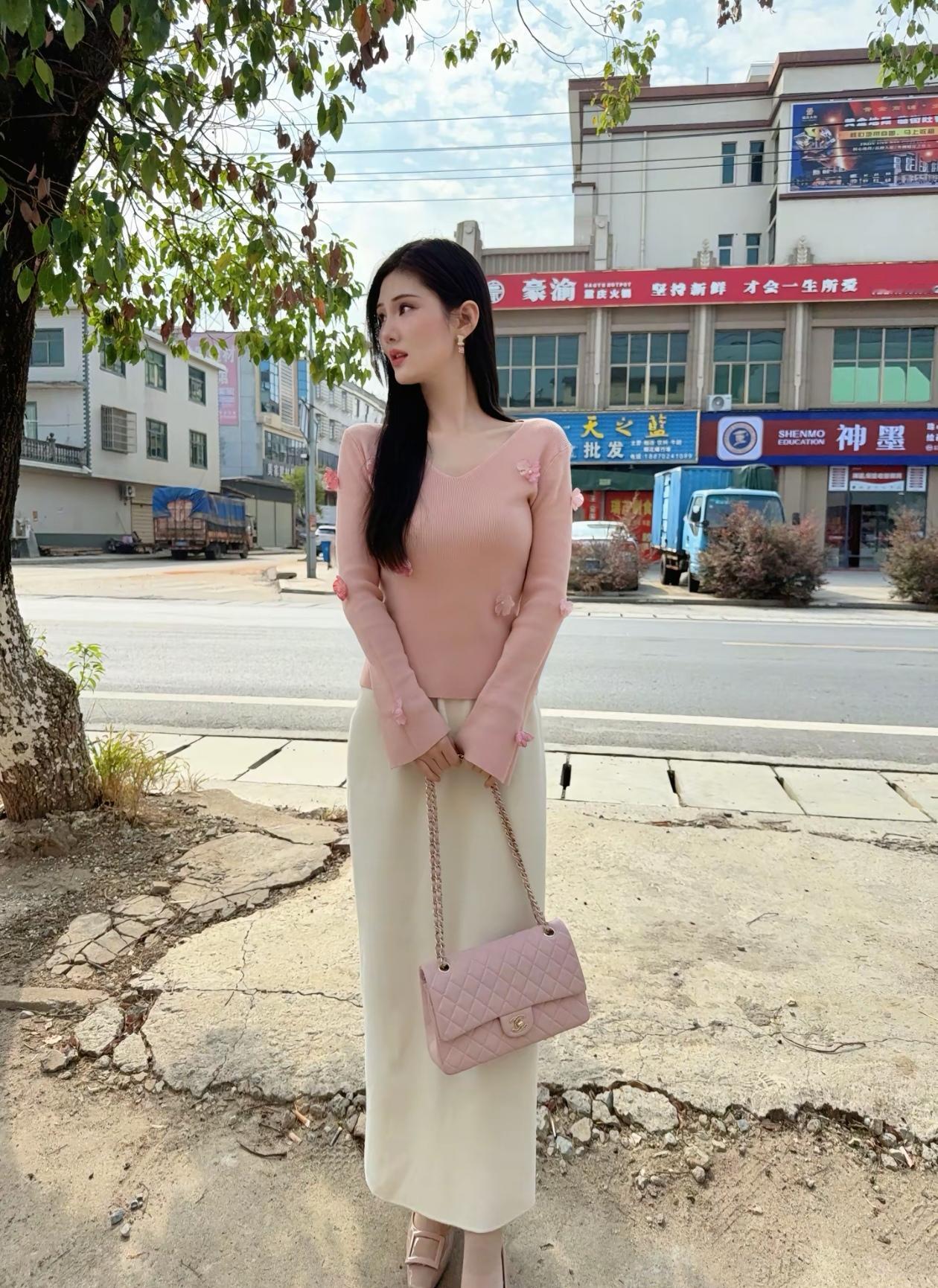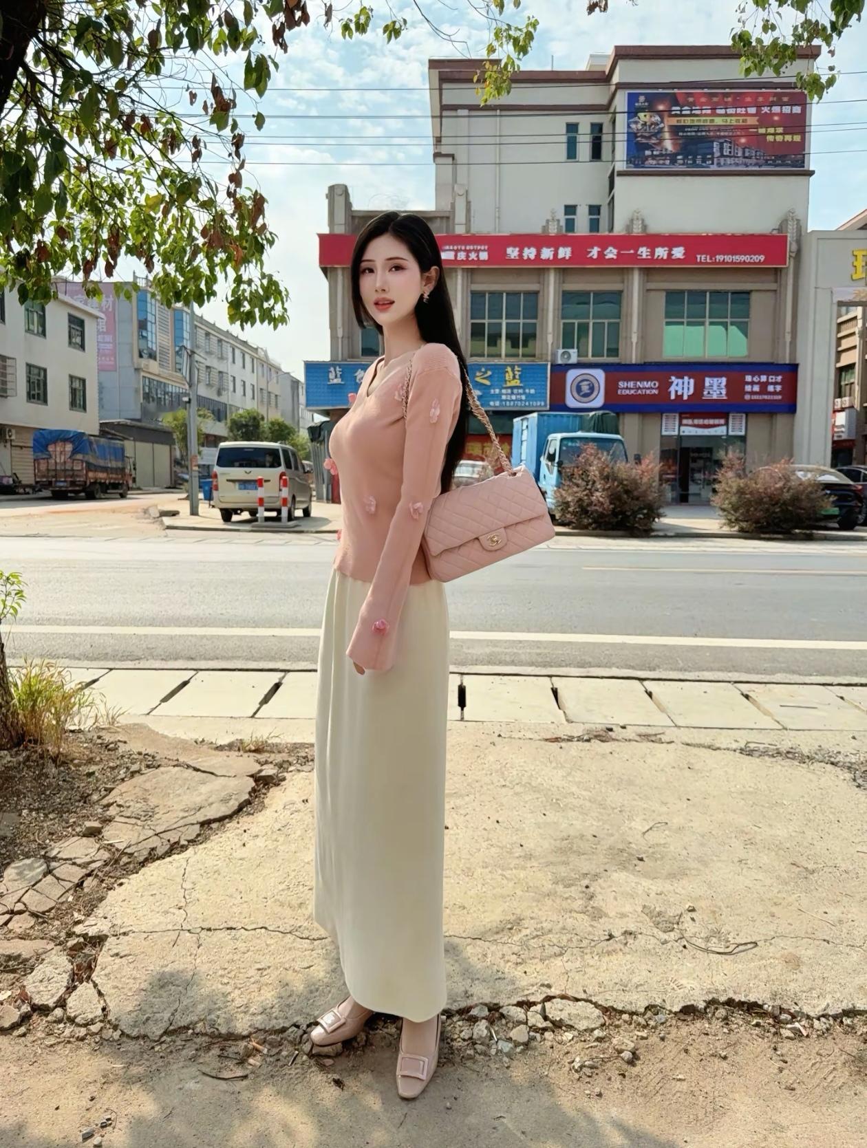 优雅穿搭指南:粉色毛衣+米色长裙,轻松出街!👗👠