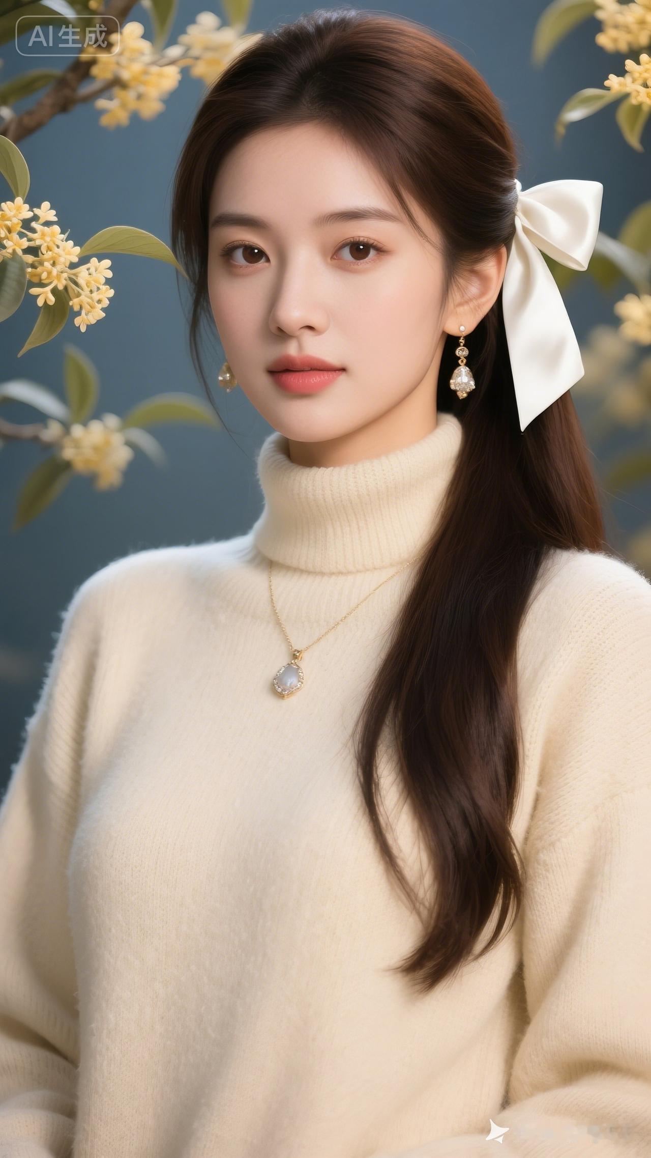 温柔优雅的春日穿搭,白色蝴蝶结发饰与珍珠项链相得益彰,尽显甜美气质。