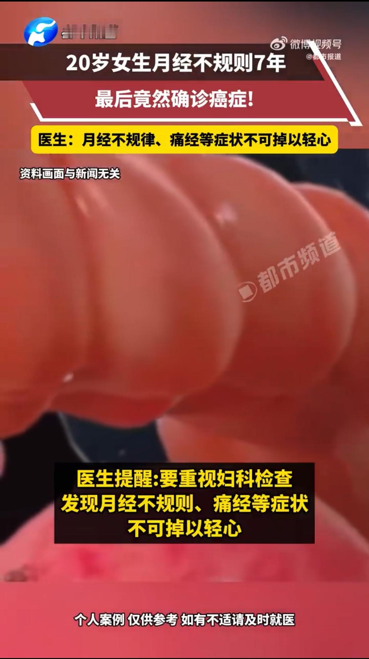 20岁女大学生从13岁开始就月经紊乱,经常两三个月不来,一来就是半个月。全家人都觉得“女孩子都这样”,从来没当回事。去年六月突然出现淋漓不尽的出血,量少但持续不停。一个多月后突然涌出大量血块,三天后血量减少却始终不干净。拖了整整两个月,直到出血再次加剧才慌忙就医。 手术时医生都震惊了——宫腔内密密麻麻布满蜂窝状病变组织,几乎塞满了整个子宫。病理结果让人心惊:子宫内膜癌!幸好发现还算及时,现在做保子宫治疗还能挽救。再晚几个月,可能就要彻底切除子宫了。 这么多年都把月经不调当成小事,差点酿成无法挽回的后果。女性健康真的不能掉以轻心,身体发出的信号一定要重视。别让“觉得没事”耽误了最佳治疗时机,定期检查就是对自已最好的保护!